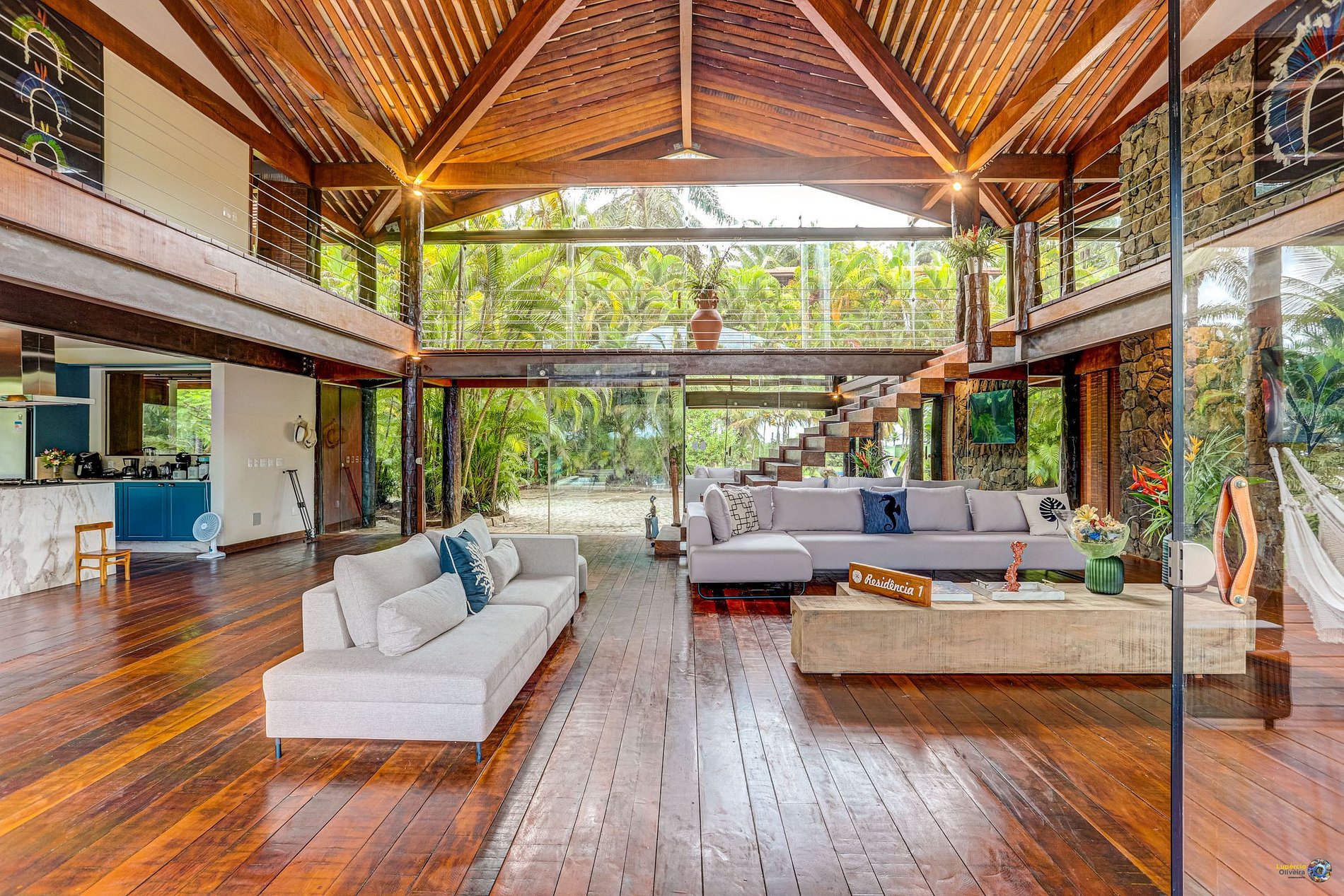 A villa foi construída visando o design de conceito aberto. Em seu primeiro andar o que se destaca é a sua grande sala de estar mobiliada com móveis planejados e decorada com a arquitetura local.