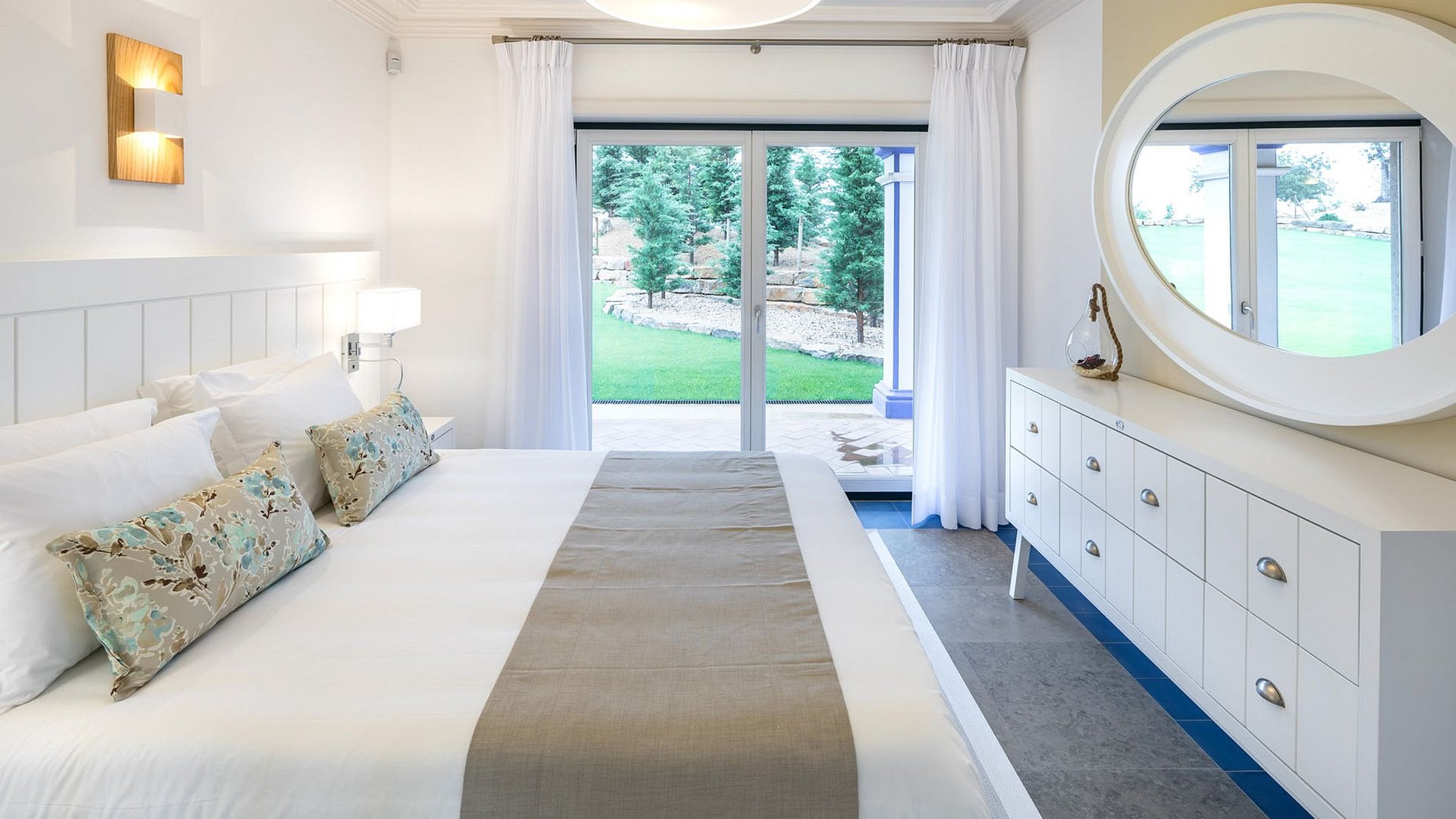 Adornada com o luxo de Algarve, esta casa térrea com grande gramado e duas piscinas, pátios enormes e terraço na cobertura com vista de 360 graus, deixará você admirado desde o momento em que você entra.