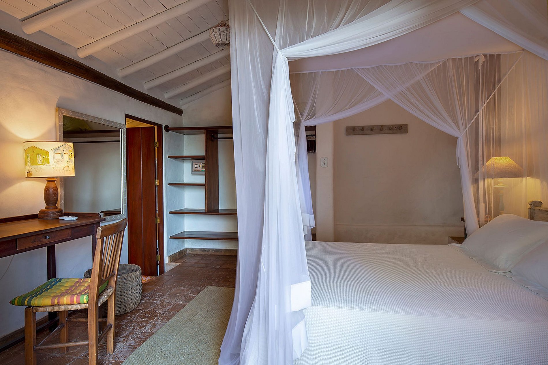 As outras duas suítes possuem terraço com acesso direto para a piscina ou o jardim tropical.Os espaços de vida interiores e exteriores estão abertos sobre o oceano, beneficiando da suave brisa do mar. Decorado com artes e artesanato local, o charme desta casa histórica é único. A poucos passos de distância, você vai curtir a piscina de borda infinita de bom tamanho e o deck na beira da colina, oferecendo uma vista deslumbrante sobre a praia e o azul do oceano.