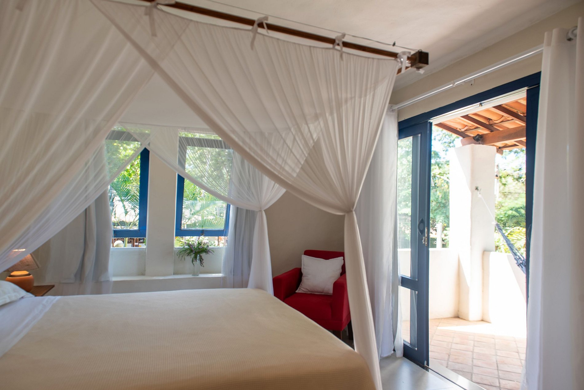 - Suíte 1: Varanda, cama queen, armário, ar-condicionado;