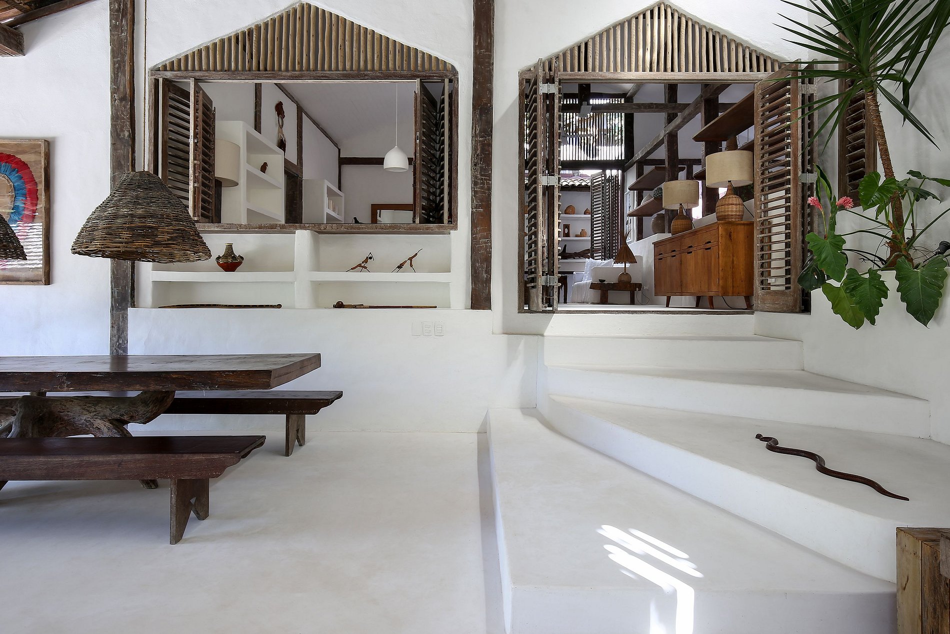 Esta jóia escondida é uma casa boémia-chique com decoração elegante misturando materiais e móveis locais, peças confeccionadas por artistas e artesãos.