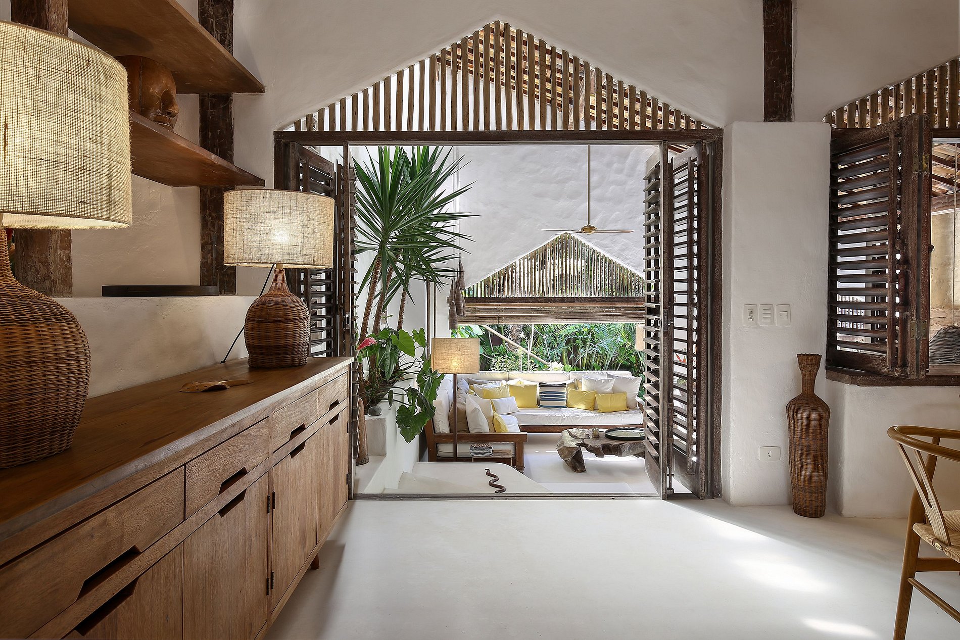 Esta jóia escondida é uma casa boémia-chique com decoração elegante misturando materiais e móveis locais, peças confeccionadas por artistas e artesãos.