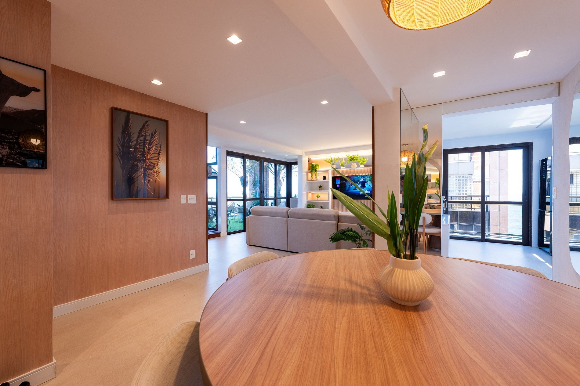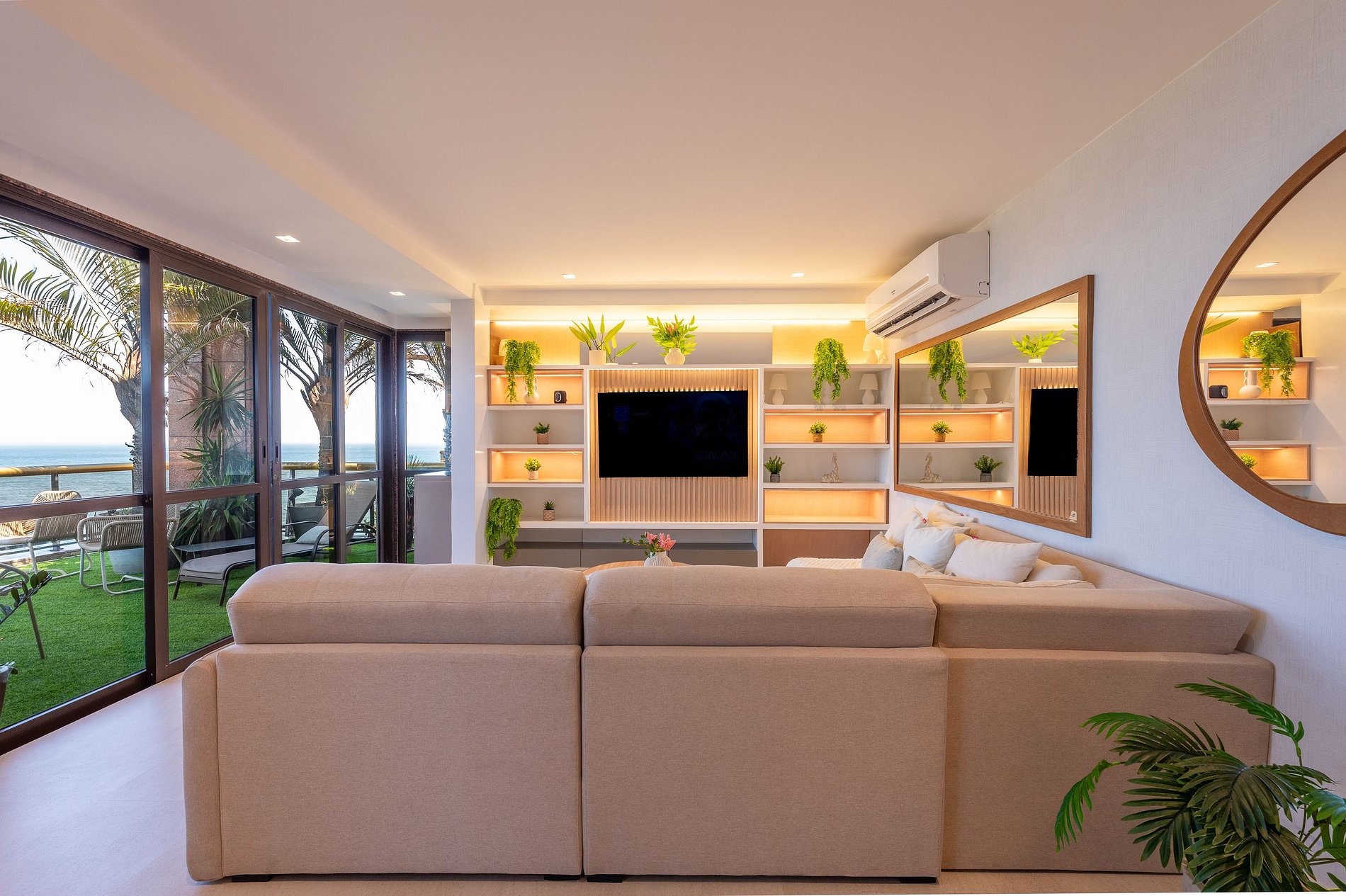 Duas belíssimas varandas ampliam os espaços de convivência. Uma delas conta com jacuzzi e espaço gourmet com churrasqueira, criando o cenário perfeito para relaxar ou receber convidados enquanto aprecia o pôr do sol sobre o oceano.