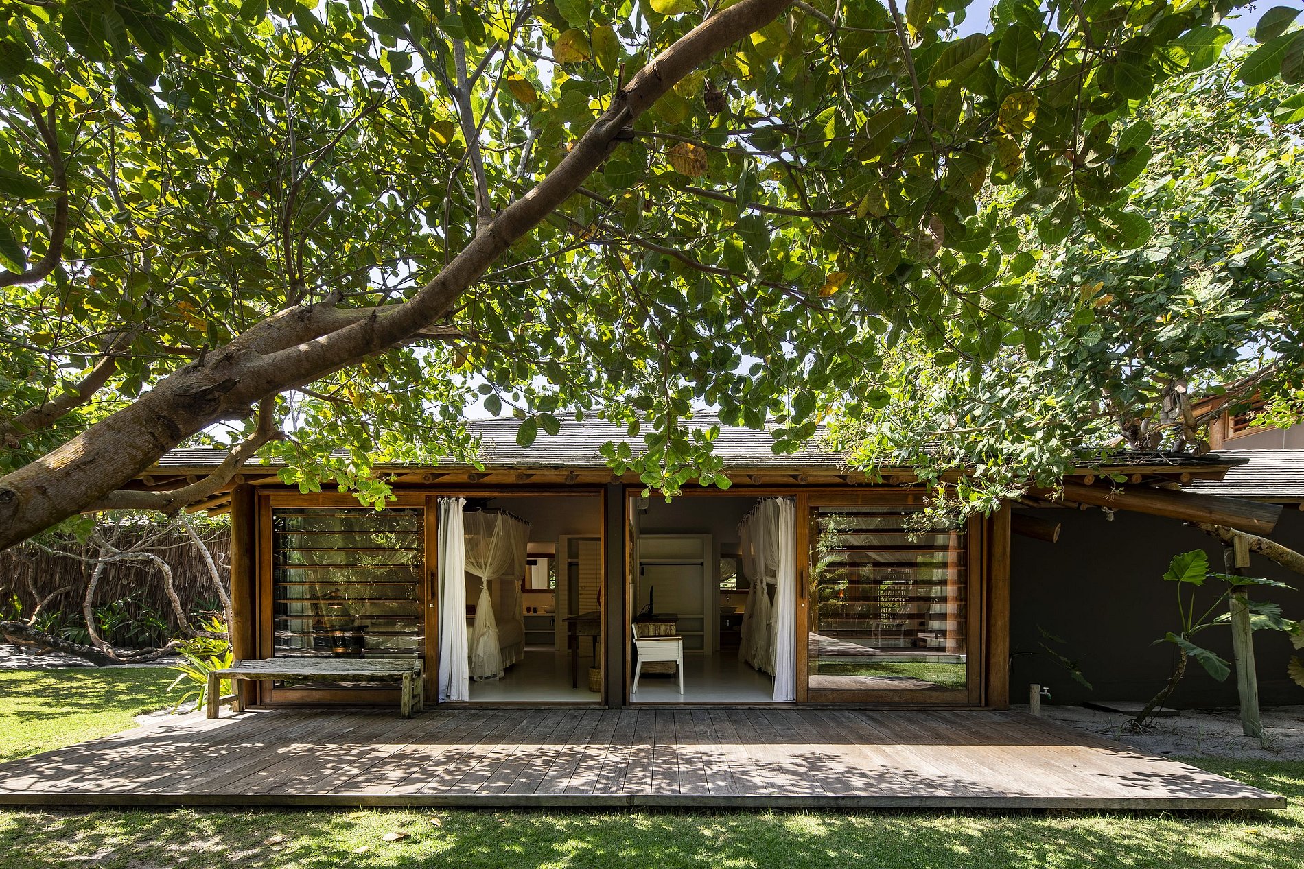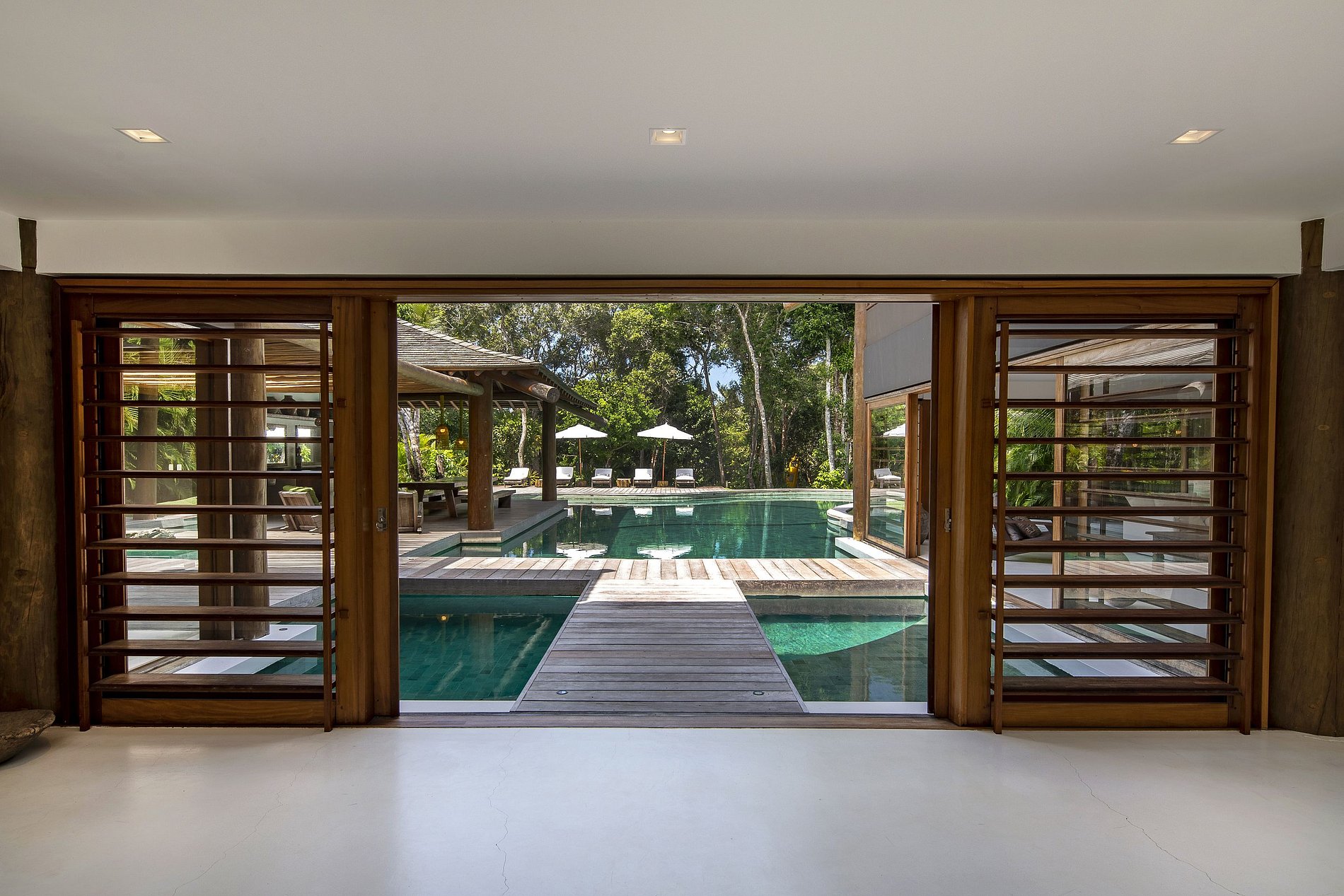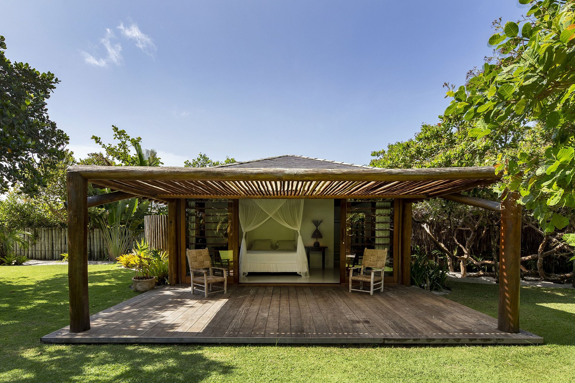 Discretos e estéticos bangalôs, de boa proporção, tem mais três suítes no total.A propriedade está erguida ao redor de uma piscina de curvas subtis, com uma água translúcida refletindo a luz dourada do sol do sul da Bahia.Ao lado a vasta área gourmet oferece espaço e praticidade para organizar almoços e jantar a dois passos da praia.A praia é mais um trunfo dessa propriedade excepcional.