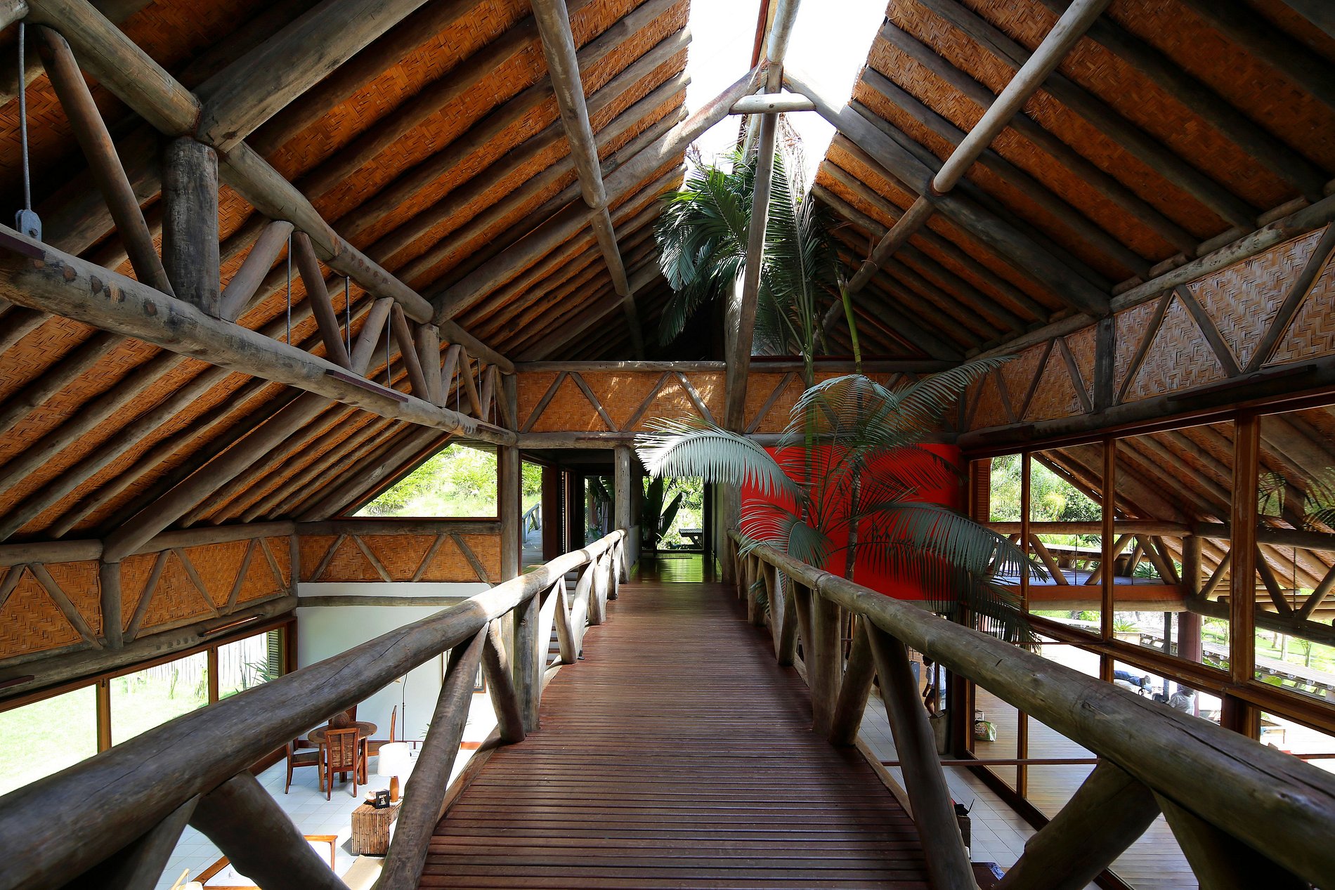 Os detalhes arquitetônicos da estrutura de madeira são espetaculares, fibras naturais, transparência de grandes portas de vidro e grandes janelas proporcionaram luz natural suave que enriquece a estadia.