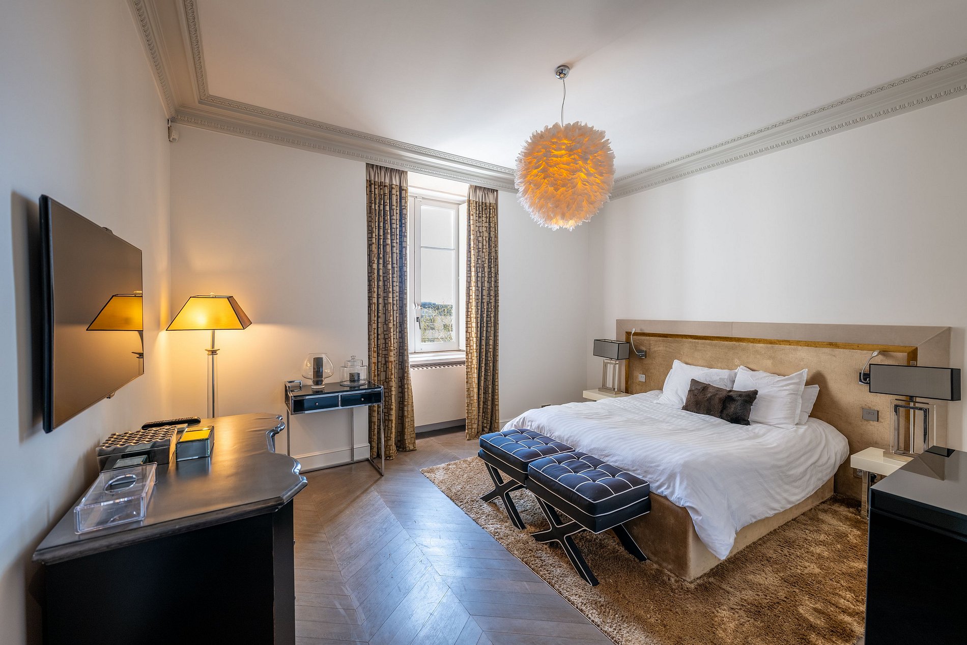 Os espaços de vida são generosamente proporcionados, com salões requintados e uma sala de jantar ideal para receber com elegância. A cozinha totalmente equipada atende aos entusiastas da culinária, enquanto nove quartos com banheiro privativo oferecem retiros luxuosos para descanso e rejuvenescimento.