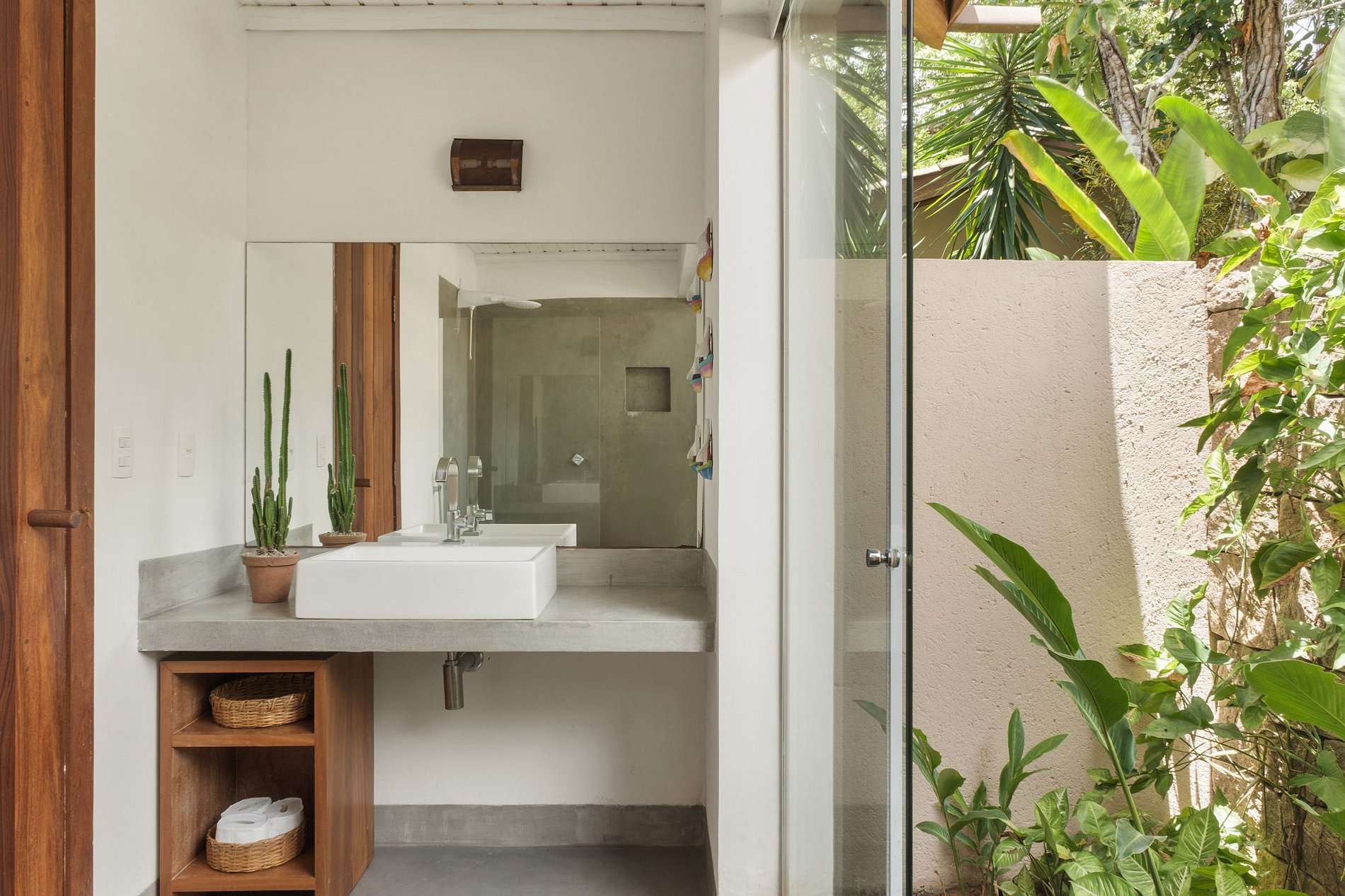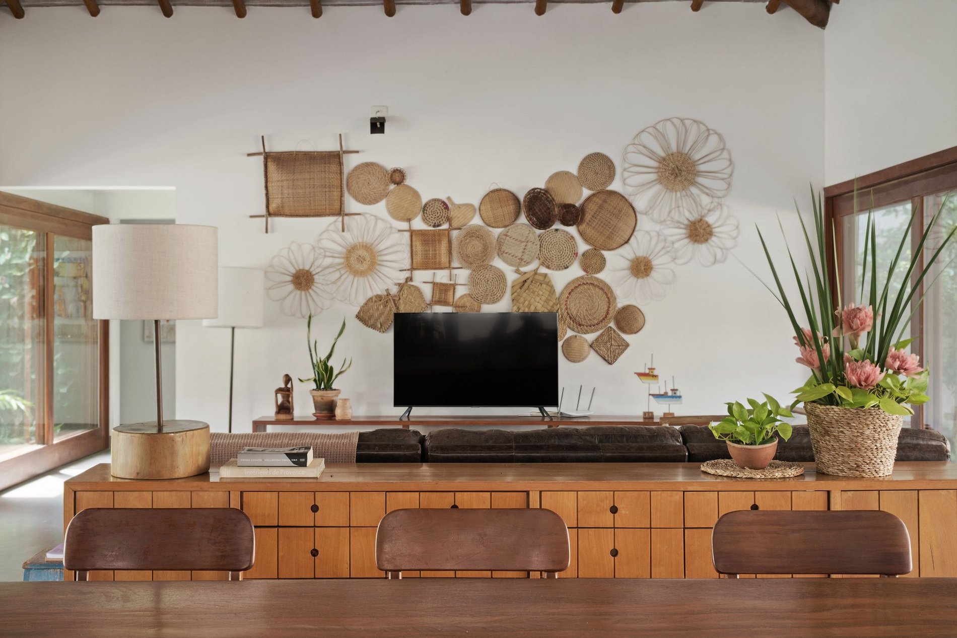 A ampla e aberta sala de estar é equipada com TV de tela plana, sistema Home theater e é climatizada para oferecer ainda mais conforto durante os momentos de lazer e descanso. A decoração da casa traz referências à cultura local e à pura imersão na natureza.