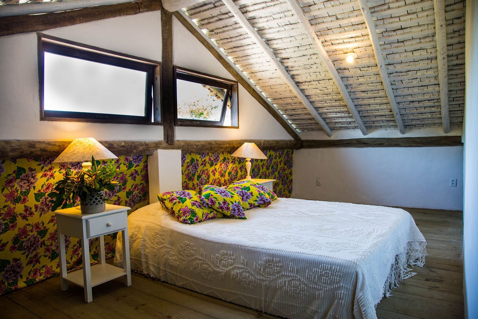 A casa tem 03 suítes no piso térreo. E mais três suítes no primeiro piso. Algumas suites possui uma antesala, que ao utilizar a divisória pode ser transformar em mais um quarto. A casa possui ainda um mezzanino, que pode ser utilizado como 02 quartos. A casa consegue acomodar até 16 pessoas.