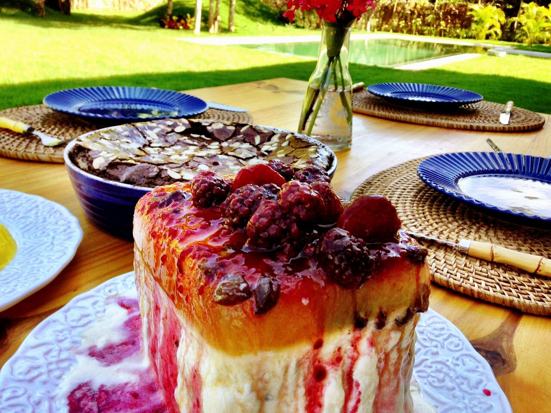 O convívio social está em torno da grande varanda. Entre a esverdeada piscina. Entre o belo gramado. Anexo está a cozinha equipada para atender aos hospedes. A varanda tem além de confortáveis sofás, a mesa de refeições, e uma copa de apoio com geladeira.