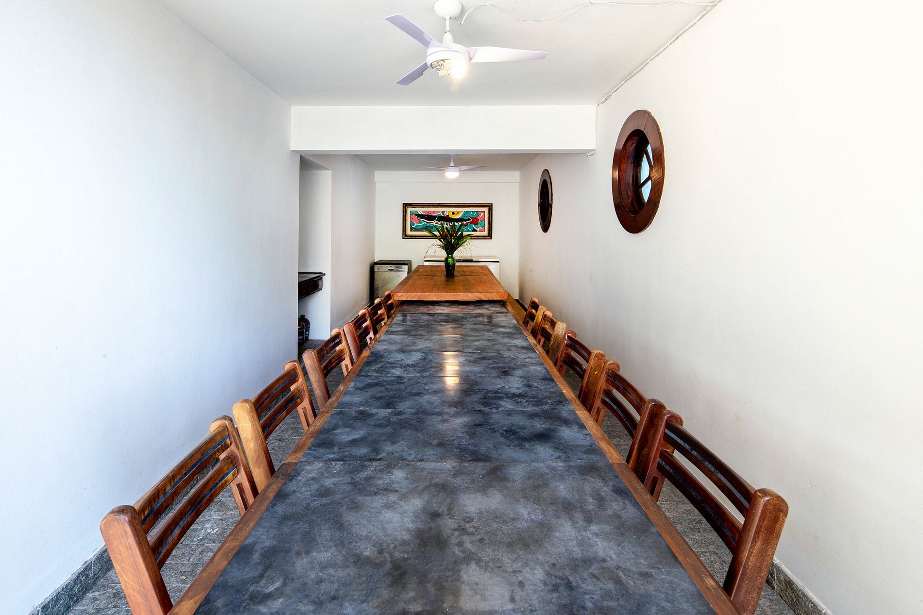 - Casa principal : 2 apartamentos (cada apartamento conta com 1 suíte com varanda, sala de estar, sala de jantar e cozinha) e 1 suíte com vista frente mar