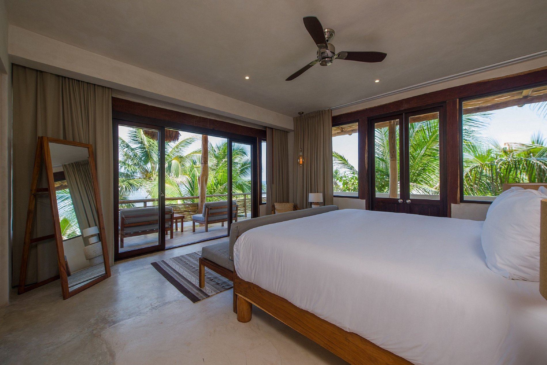 1. Três quartos com banheiros privativos, uma ampla sala de estar, sala de jantar, cozinha totalmente equipada, terraço privativo e um impressionante terraço com vista para o mar.