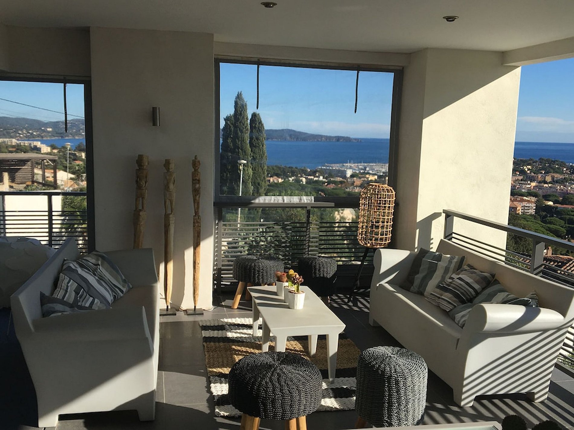 A poucos minutos das praias de Cavalaire e do centro da cidade de Cavalaire, esta magnífica villa de estilo contemporâneo tem uma vista deslumbrante sobre as Ilhas Douradas.