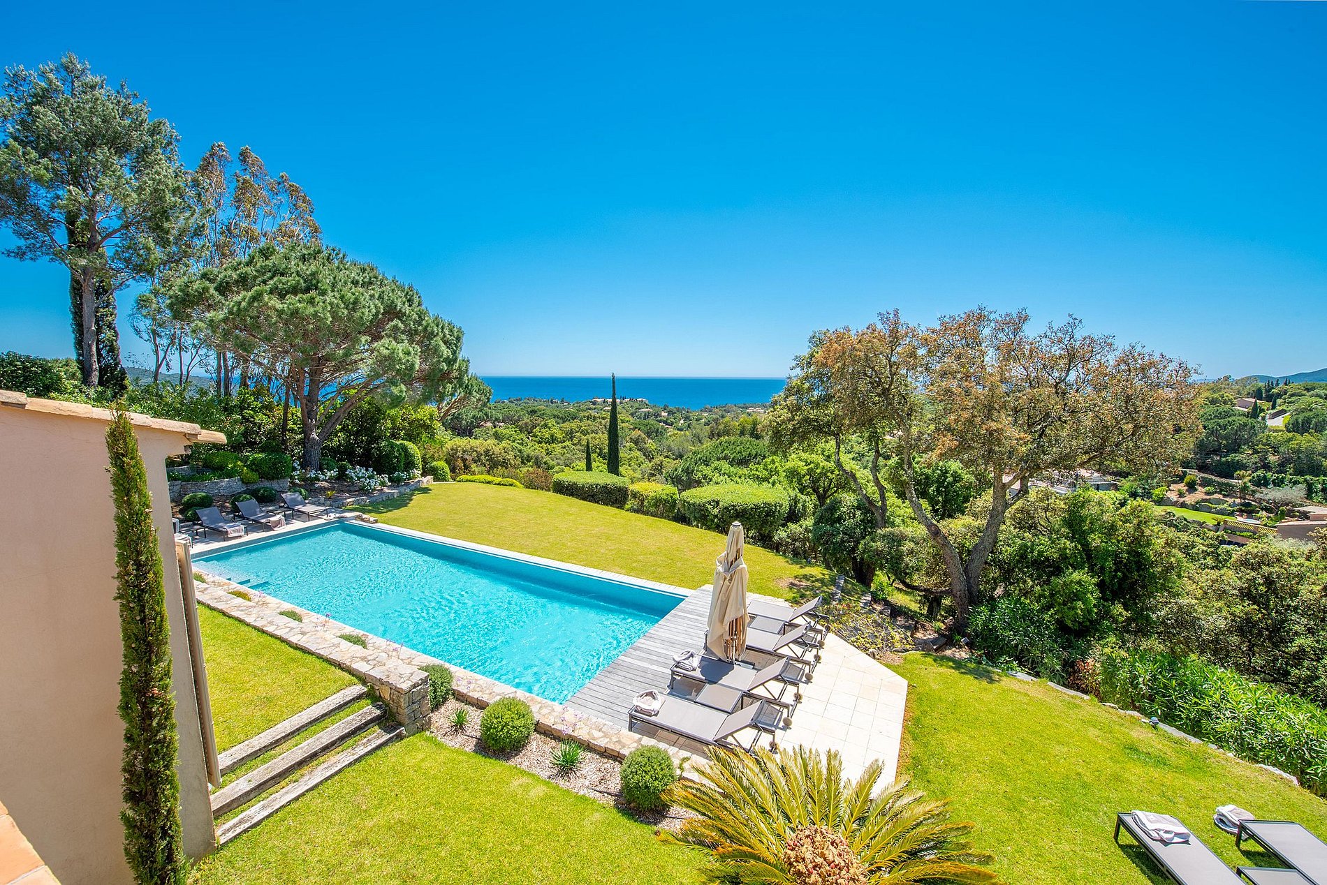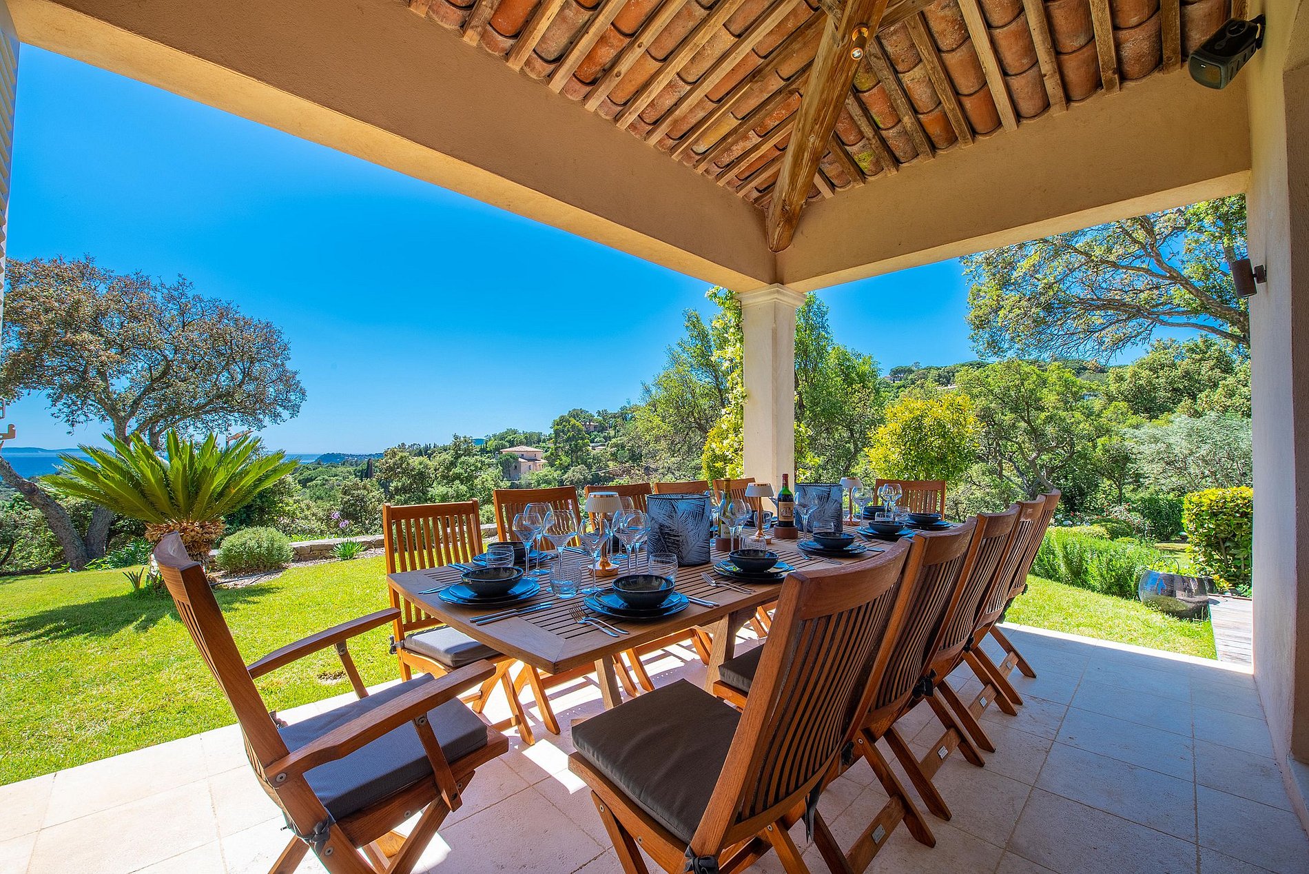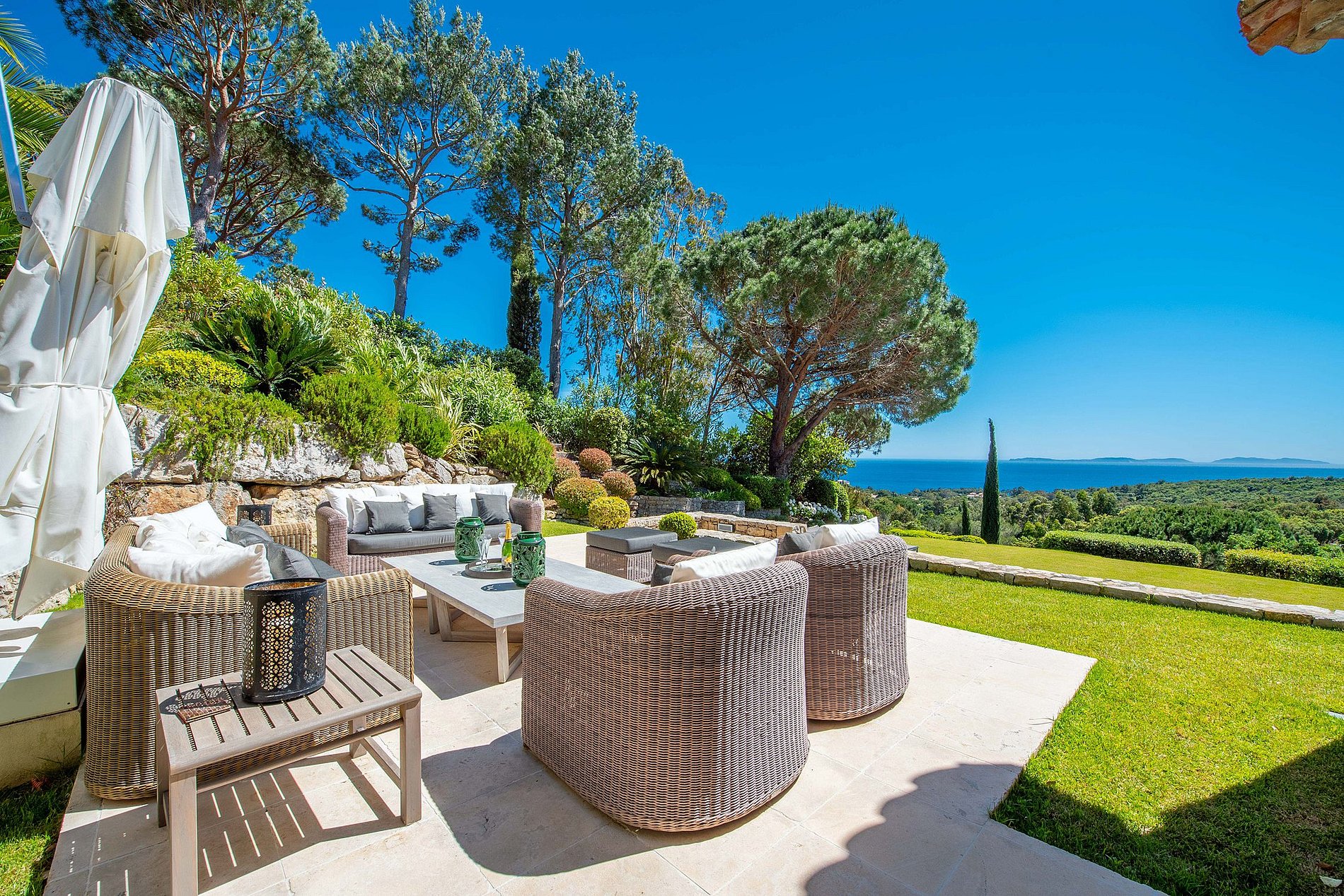 Tranquilamente situada em um domínio privado, esta villa está situada em uma vegetação exuberante de frente para o mar: os hóspedes experimentarão uma viagem pelo seu estilo mediterrâneo.