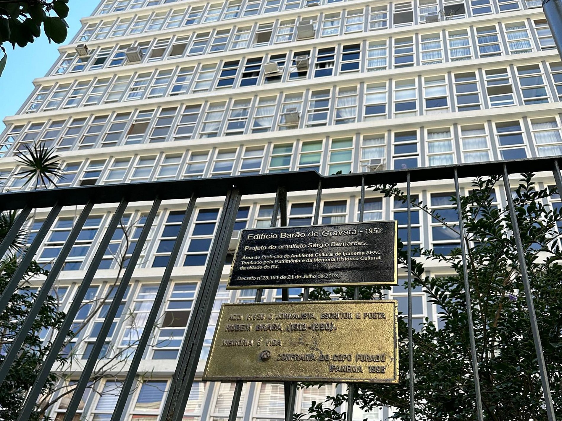 O Edifício Barão de Gravatá, erguido em Ipanema na década de 1950, é uma obra notável da arquitetura modernista brasileira, projetada por Sérgio Bernardes. Com sua fachada envidraçada e o maior jardim suspenso do bairro, criado por Burle Marx, o edifício se destaca pela elegância de seu design. Além disso, a presença marcante de Rubem Braga, um dos maiores cronistas do Brasil, que residiu em sua cobertura por quase três décadas, confere-lhe um significado cultural único, tornando-o um ponto de convergência entre arquitetura, natureza e literatura brasileira.