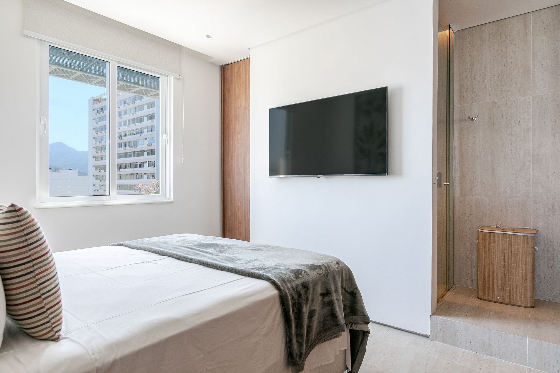 Você será imediatamente cativado pela sala de estar, que se funde perfeitamente com uma cozinha de estilo americano, criando um espaço amplo, iluminado e acolhedor. As janelas panorâmicas da sala oferecem uma vista deslumbrante da cidade e dos majestosos picos dos Dois Irmãos, enquanto você desfruta da companhia de amigos e familiares.