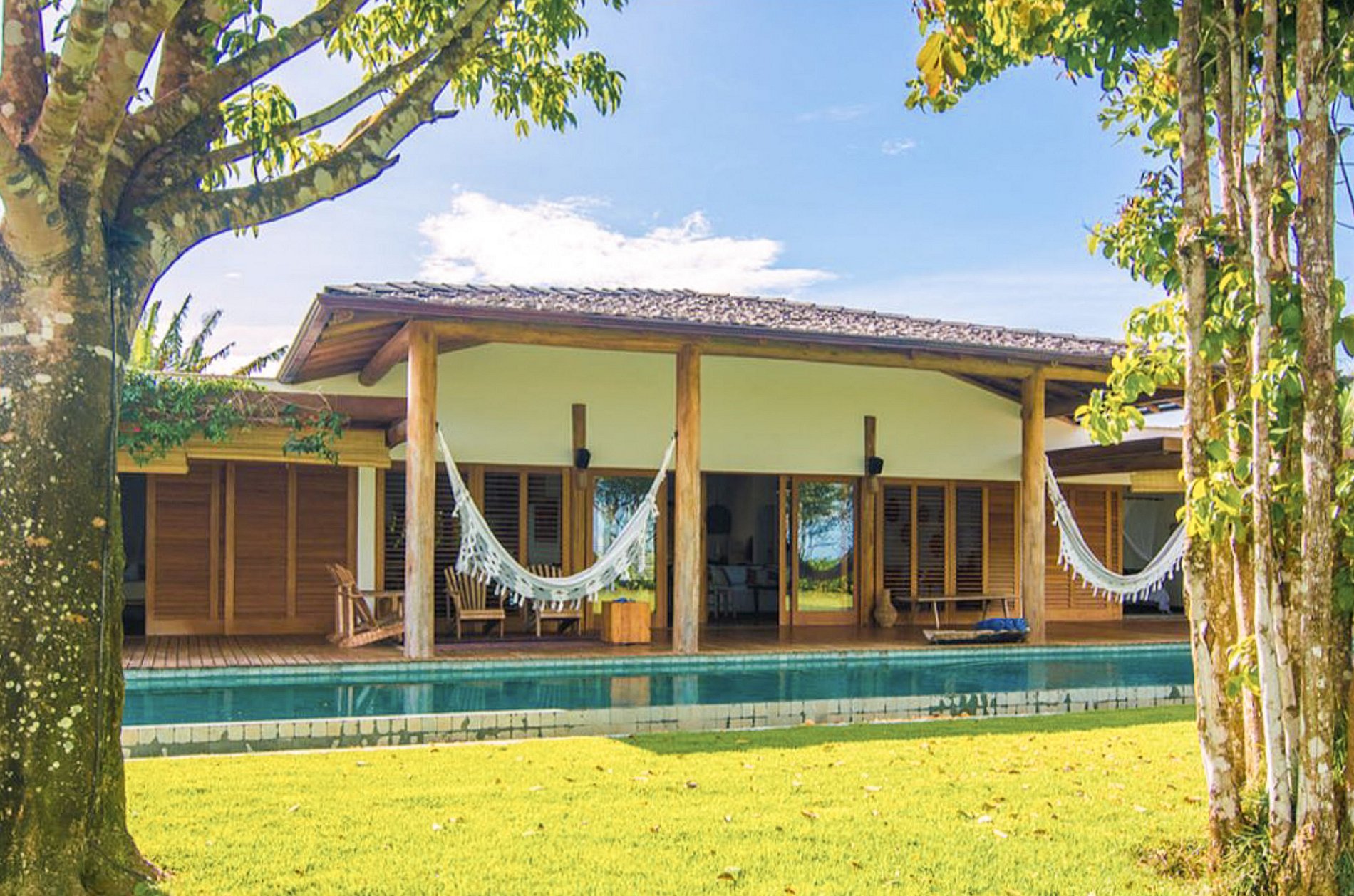 Localizada no Condomínio Altos de Trancoso – uma reserva com 95mil m² de praças e áreas verdes, belíssimos mirantes e com acesso direto à Praia dos coqueiros – esta aconchegante casa para alugar na Bahia, oferece todo o conforto e comodidade necessários para se viver as férias perfeitas.