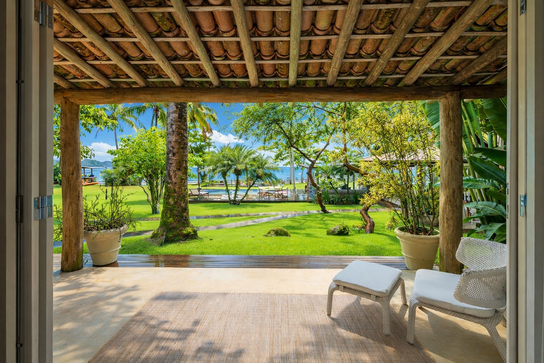 Entre as colinas verdes de Ilha Grande e atrás dos 400 metros de praia de areia branca encontra-se a propriedade espaçosa e encantadora da Praia do Iguassu.