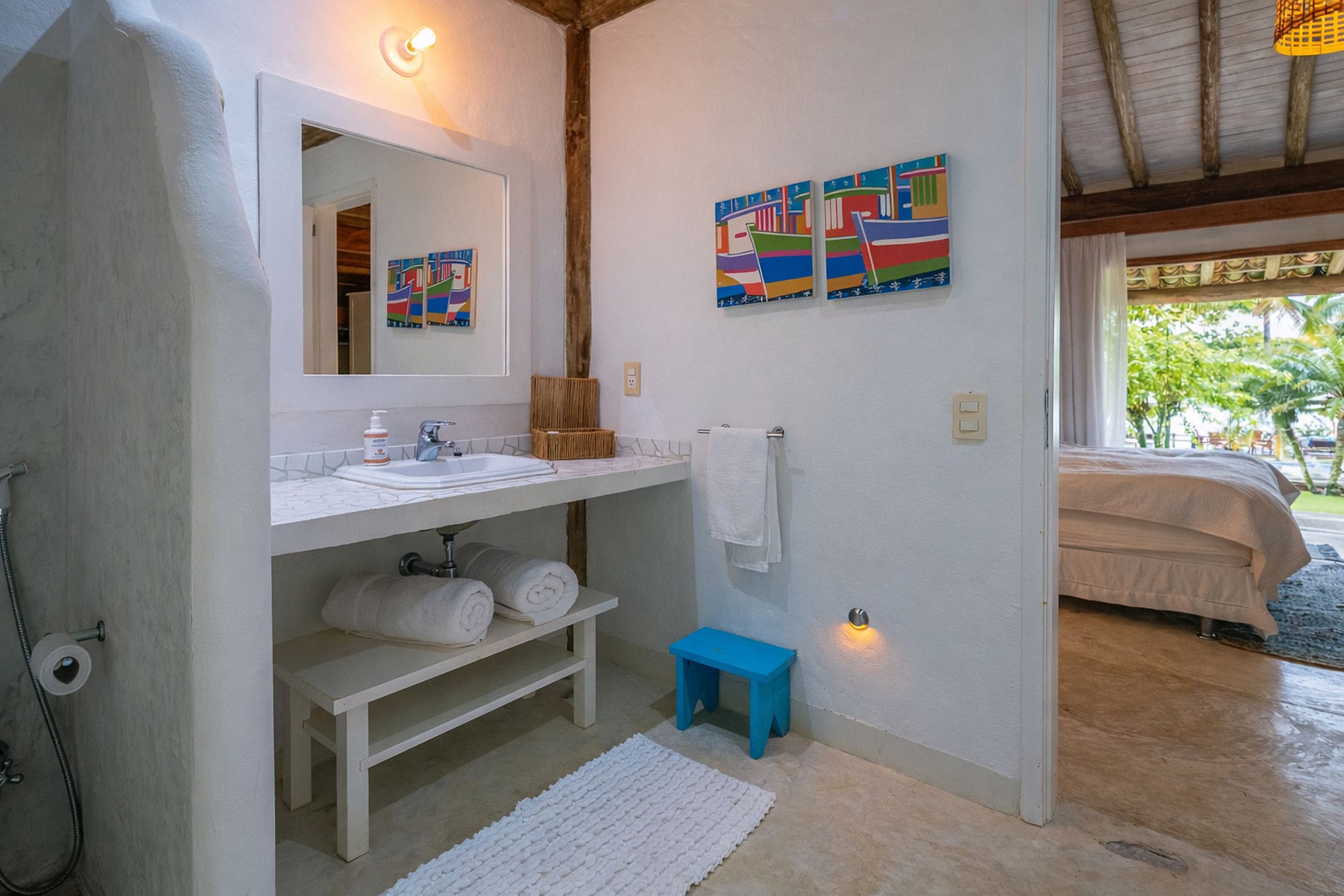 As acomodações da villa são compostas por uma casa principal com um anexo conectado e duas suítes master separadas. Juntos, a casa principal da villa e o anexo conectado totalizam 5 suites, As duas suítes master separadas têm uma sala de estar e seu próprio ofurô privado ou uma banheira de hidromassagem japonesa de madeira.