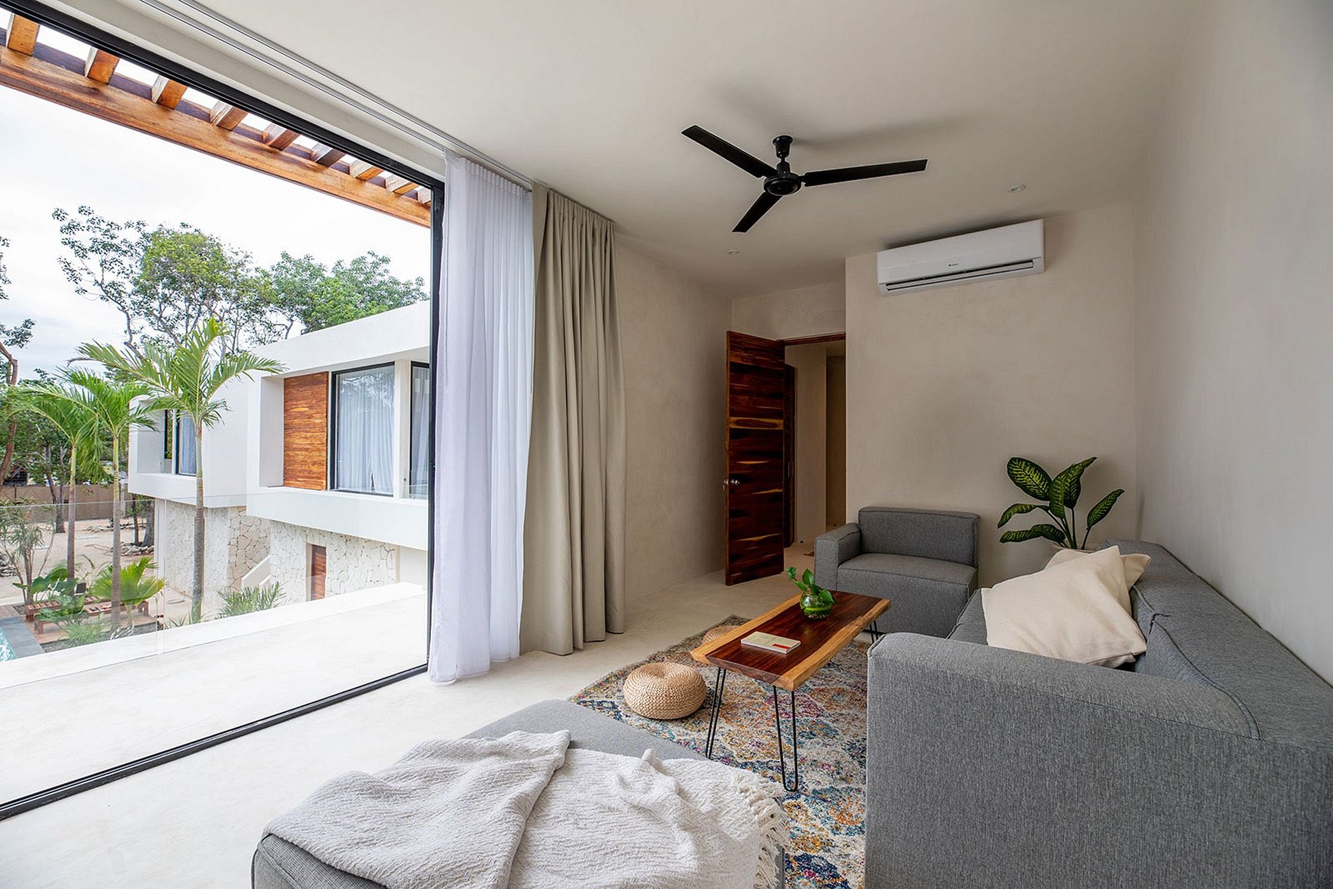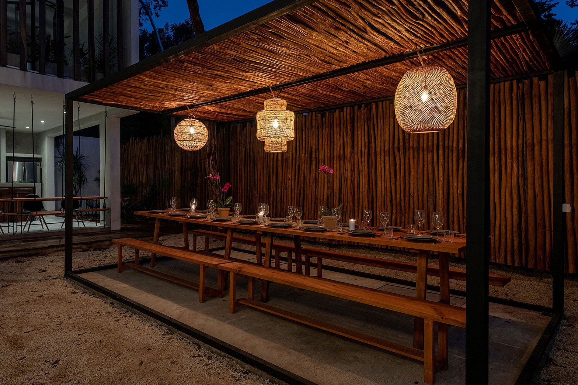 A vila foi construída no verdadeiro espírito de Tulum. Luxo por design, materiais naturais, grandes espaços verdes. Encontre equilíbrio e harmonia para compartilhar, criar e desfrutar. Coma saudável, relaxe a mente, exercite-se ... todas as opções existem para você aproveitar. Cada quarto tem acesso individual, ar condicionado, banheiro privativo e um terraço privativo. A lareira pode ser usada diariamente para reunir, relaxar e desfrutar de uma noite tranquila e relaxante após seus dias ensolarados. Nosso sistema de som permite que você coloque suas músicas favoritas via Bluetooth enquanto relaxa na piscina ou na cozinha aberta.