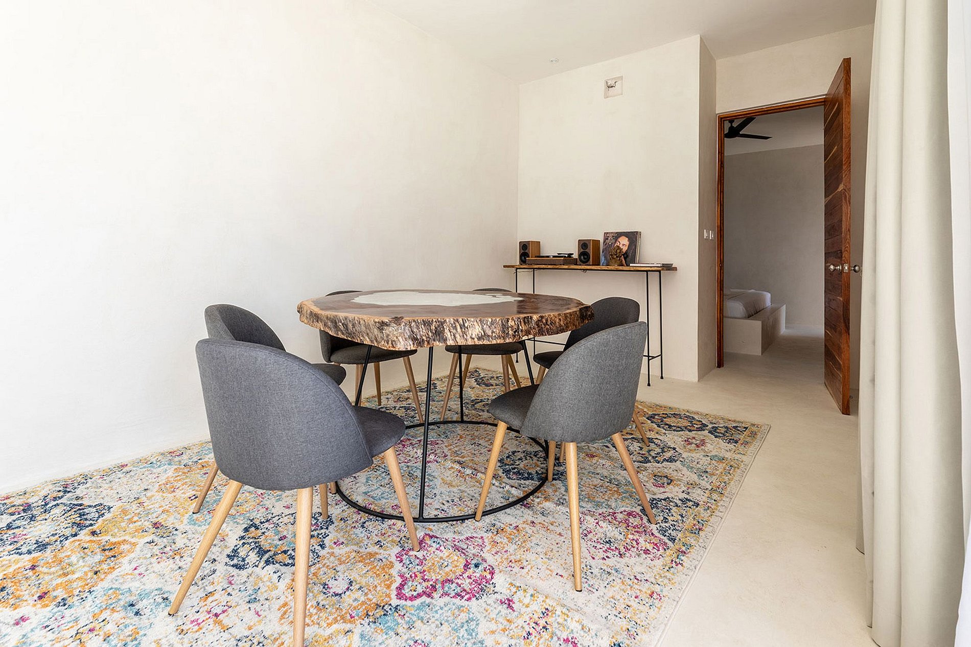 A vila foi construída no verdadeiro espírito de Tulum. Luxo por design, materiais naturais, grandes espaços verdes. Encontre equilíbrio e harmonia para compartilhar, criar e desfrutar. Coma saudável, relaxe a mente, exercite-se ... todas as opções existem para você aproveitar. Cada quarto tem acesso individual, ar condicionado, banheiro privativo e um terraço privativo. A lareira pode ser usada diariamente para reunir, relaxar e desfrutar de uma noite tranquila e relaxante após seus dias ensolarados. Nosso sistema de som permite que você coloque suas músicas favoritas via Bluetooth enquanto relaxa na piscina ou na cozinha aberta.