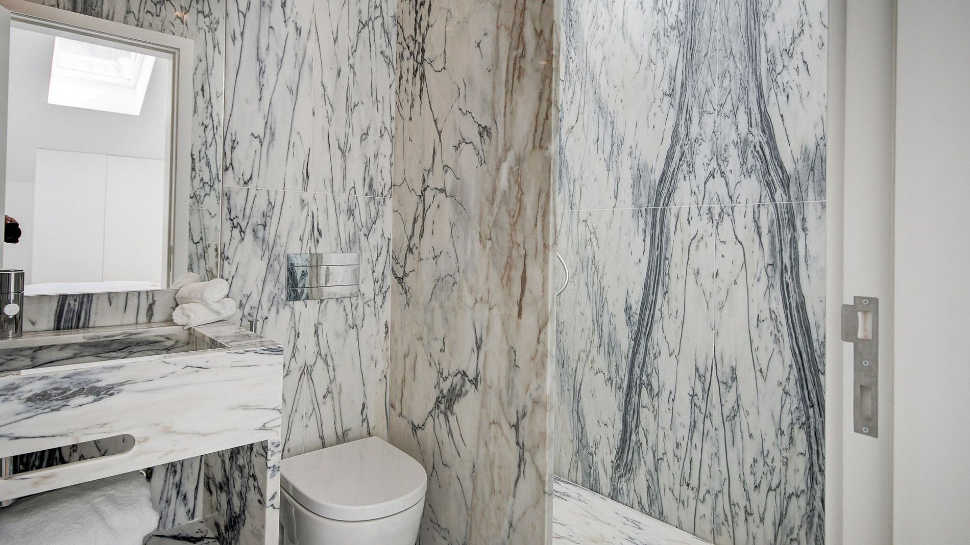 Possui tetos altos emoldurados por janelas de pé direito duplo e portas de correr de vidro que conduzem a um pátio interior com piscina. O interior tem um design minimalista e o piso de madeira é acentuado por obras de arte arrojadas, criando um estilo moderno.