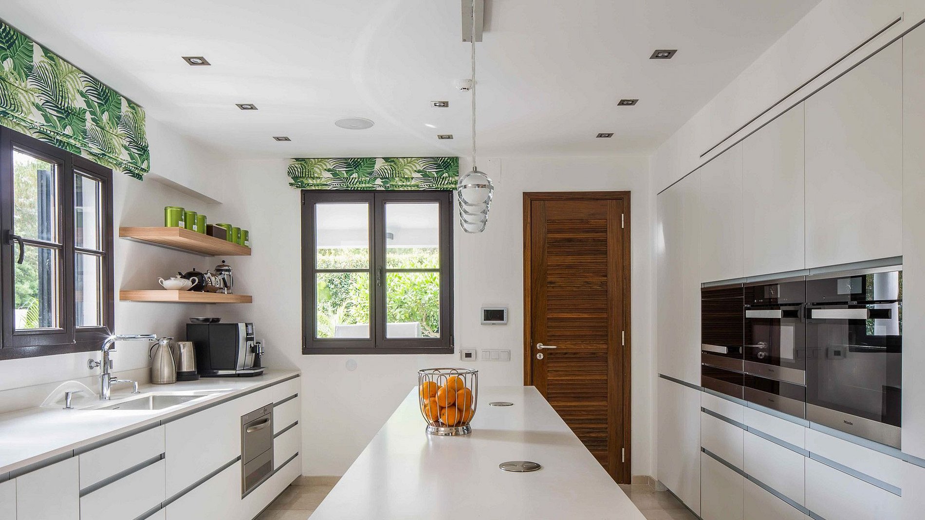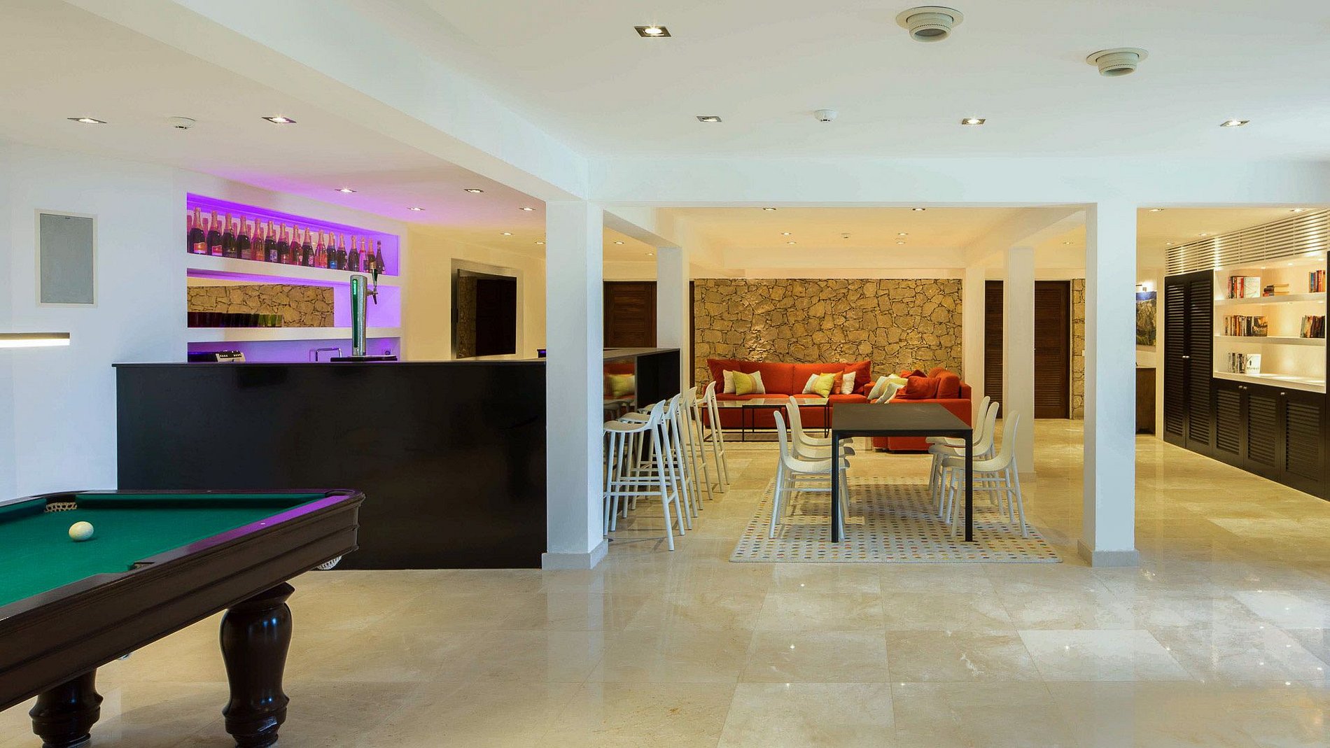 A villa possui cinco quartos sofisticados e vários espaços de estar. Pode acomodar até 10 convidados. Há uma academia, sala de jogos, piscina infinita aquecida, jacuzzi e equipamentos esportivos. O interior está repleto de arte original excepcional e peças de colecionador que tornam a propriedade especial.