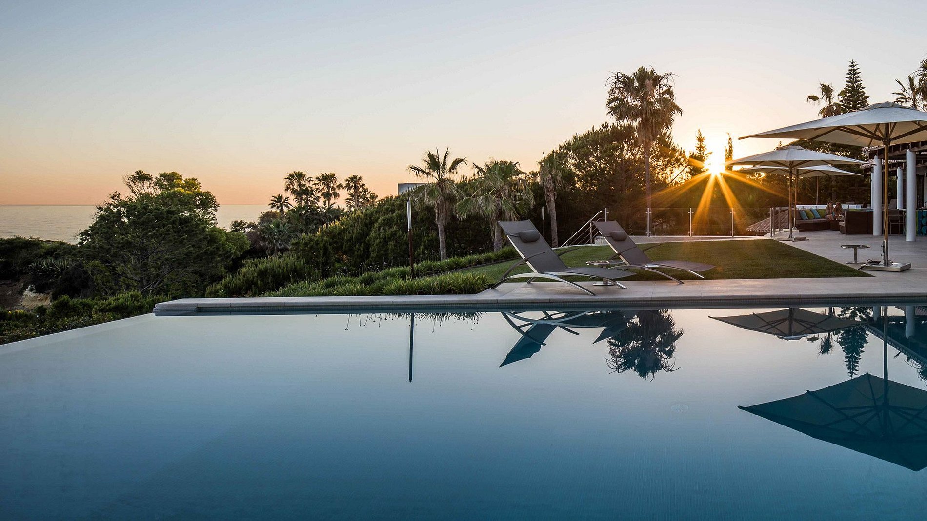 Esta soberana villa está escondida em uma enseada encantadora, escondida entre magníficas longas praias de areia e tem vistas deslumbrantes sobre o oceano, falésias douradas e jardins exuberantes.