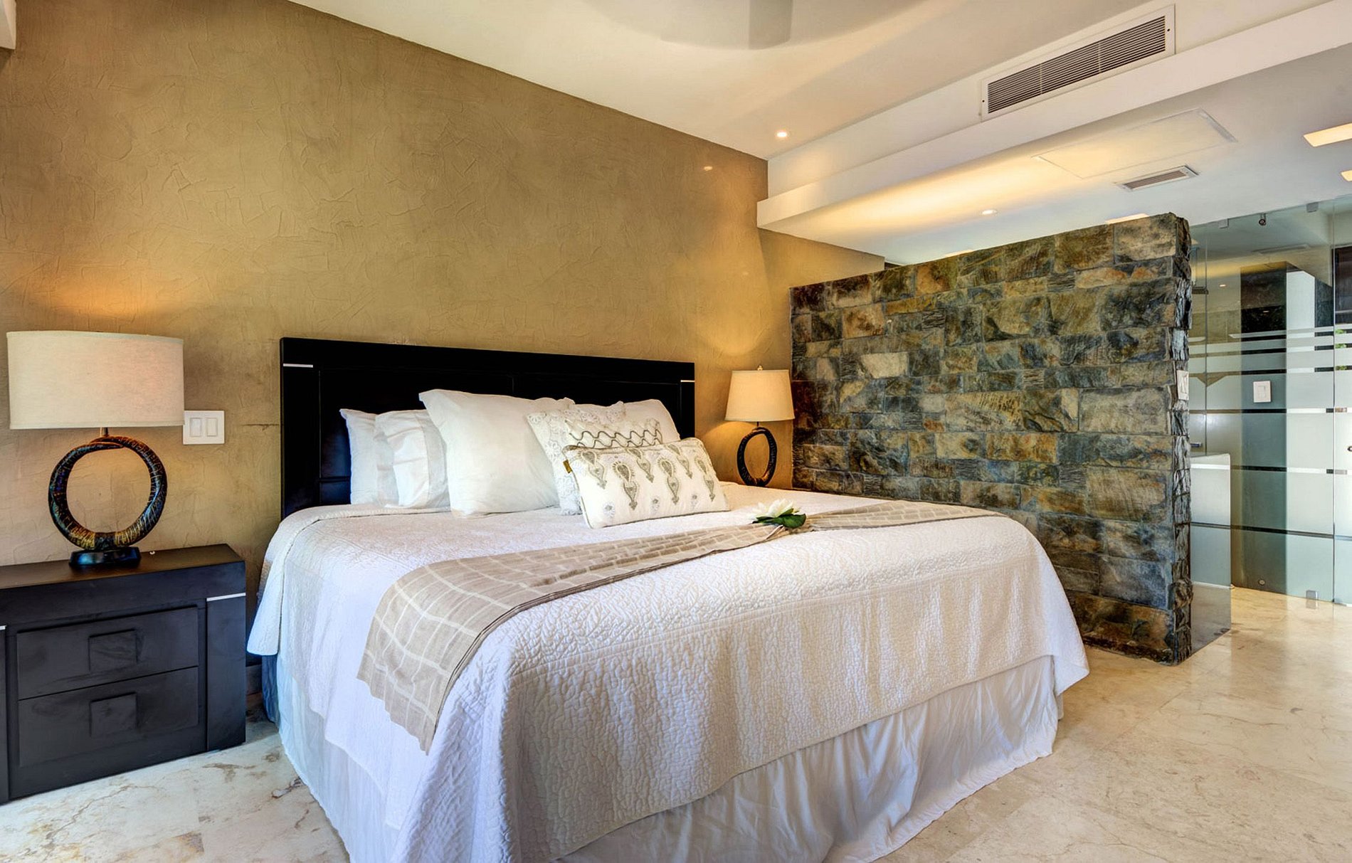 A vila possui um quarto principal com piscina infinita privativa e 6 suítes iguais adicionais com suas próprias entradas privadas. A vila envolve a piscina do solo e as áreas de jardim aberto, criando um grande pátio privado para os hóspedes.