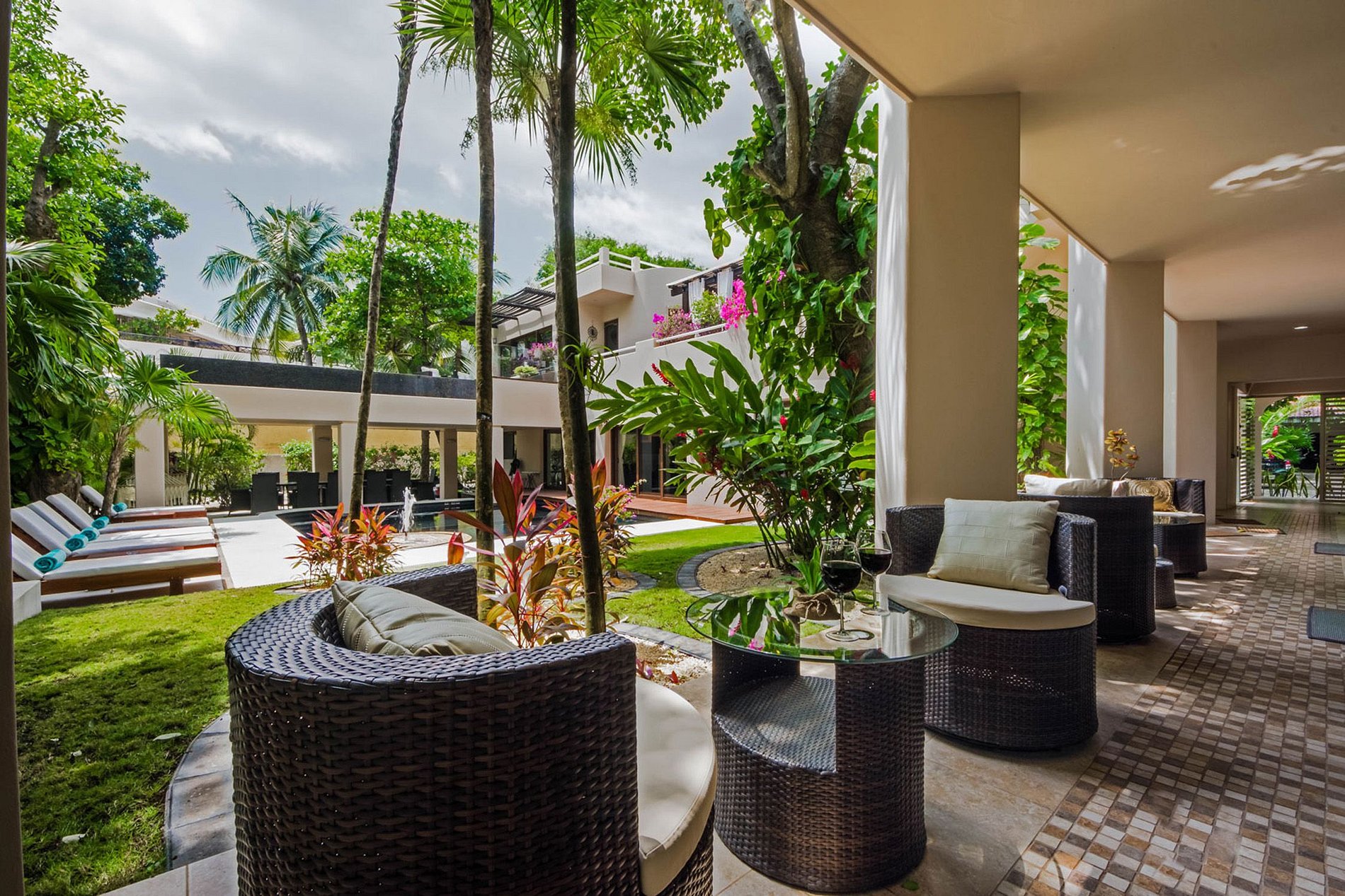 A vila possui um quarto principal com piscina infinita privativa e 6 suítes iguais adicionais com suas próprias entradas privadas. A vila envolve a piscina do solo e as áreas de jardim aberto, criando um grande pátio privado para os hóspedes.