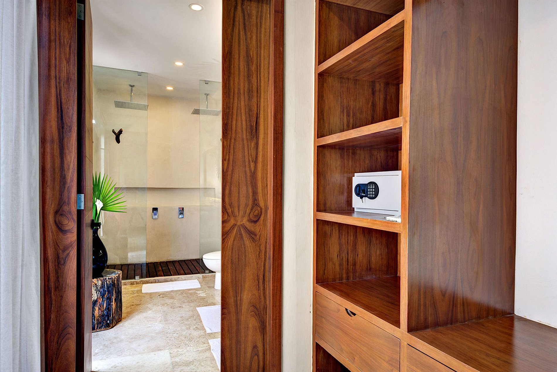 A casa orgulha-se das áreas comuns externas desta propriedade, que apresentam um terraço arejado no último andar com um bar com vista para a marina e a selva, e um espaço de palapa para atividades coletivas mais relaxantes ou coletivas, como ioga e meditação ou serviços de spa. No nível do solo, à beira da piscina, você também poderá desfrutar do sol durante o dia ou à noite, churrascos com confraternizações ao redor de uma fogueira.