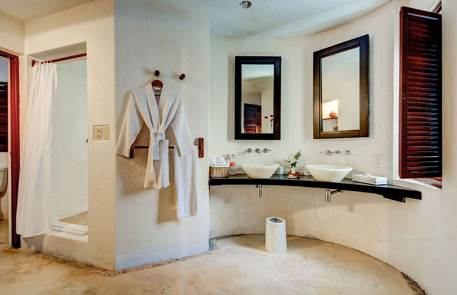 Os locais de interesse das proximidades incluem Playa del Carmen, Tulum, Xcaret e Cozumel. Cada suíte oferece jardim tropical, banheiro privativo e ar-condicionado. Móveis, portas e janelas maravilhosamente artesanais combinam-se com coloridos tecidos mexicanos tecidos à mão para criar o que há de melhor em luxo no Caribe mexicano. Algumas de nossas suítes têm terraços privativos e oferecem vistas do oceano e da selva. Mini-bar e cofre estão em todas as suítes para conveniência dos hóspedes. A área comum que todas as suítes de hóspedes compartilham possui um volumoso teto de palha de 10 metros que é realmente de tirar o fôlego. Portas e janelas dobráveis se abrem para o nosso amplo terraço ao lado da área comum e oferecem vistas inesquecíveis da praia particular da casa e das águas azul-turquesa do Caribe.