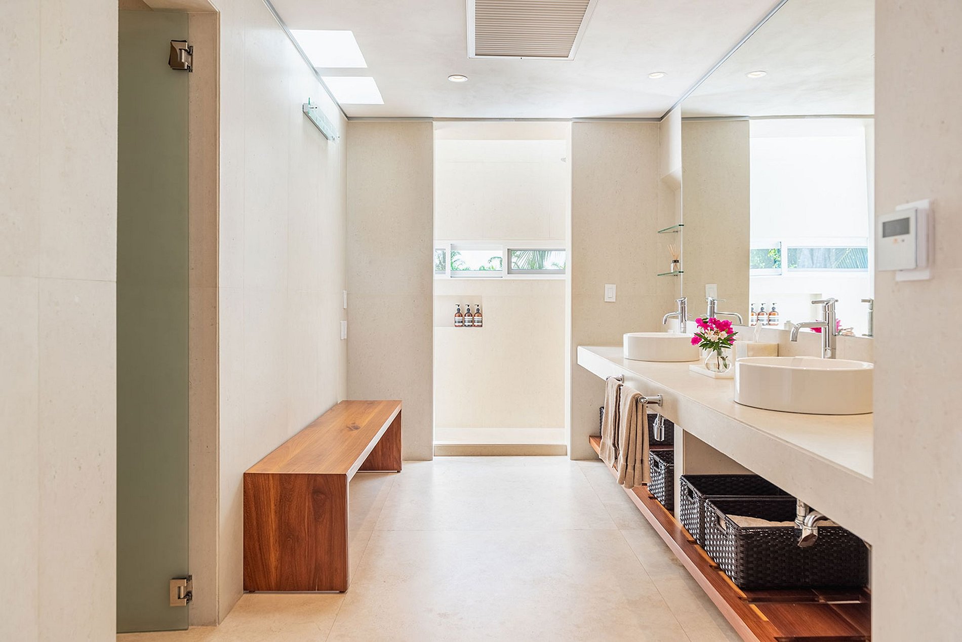 A apenas 20 minutos ao norte da icônica zona hoteleira de Cancún, esta casa está localizada em Playa Mujeres, um dos condomínios fechados mais exclusivos e seguros da Riviera Maya. A casa é o lugar perfeito para passar férias para relaxar longe da agitação de Cancún, mas ao mesmo tempo convenientemente localizada perto o suficiente de todos os restaurantes famosos, clubes de praia, shopping centers e muitas outras atividades e experiências de aventura, incluindo o dia viagens para Isla Blanca e Isla Mujeres. Uma das características favoritas da casa é que, embora esteja a apenas 2 minutos a pé de sua bela praia particular de areia branca e águas azul-turquesa, a propriedade possui uma quantidade insana de privacidade e segurança com apenas 5 propriedades no condomínio fechado Naay.