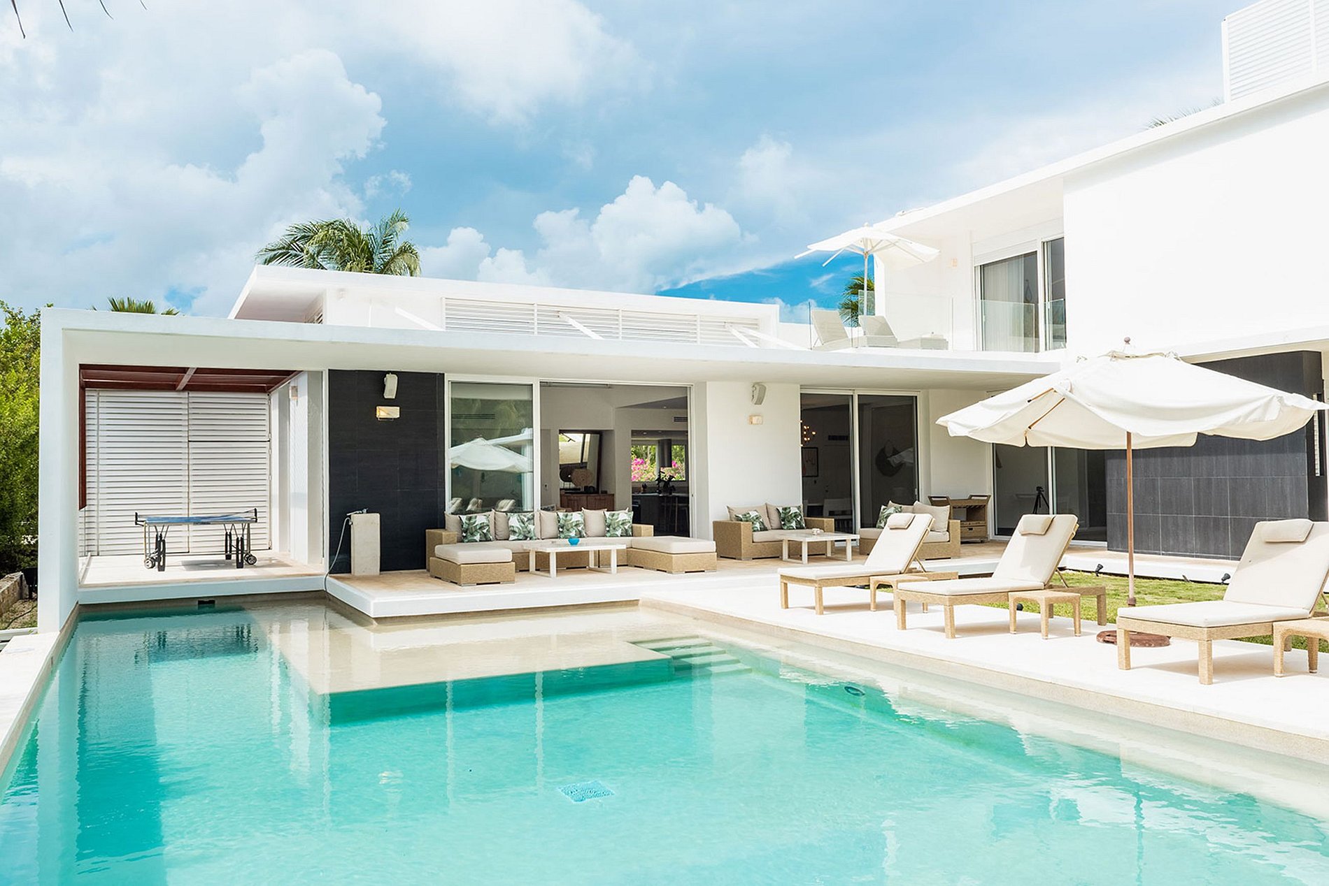 Esta é uma casa bonita e espaçosa, moderna e contemporânea com 5 quartos. Tem uma ampla sala de estar e jantar e uma cozinha em plano aberto totalmente equipada. Cada quarto tem a sua própria casa de banho privativa: as 2 primeiras suites situam-se no 2º piso e as restantes 3 suites no rés-do-chão. O quinto quarto é considerado meio quarto com duas camas de solteiro e equipamentos de ginástica top de linha. A casa também vem com uma prancha de SUP, uma mesa de pingue-pongue e uma scooter marítima, bem como equipamento de mergulho. O condomínio fechado tem seu próprio clube de praia com piscina adicional e praia com espreguiçadeiras e guarda-sóis, se necessário. Fica perto do novo Puerto Cancún com seu novo shopping, restaurantes da moda e cinema, além de oferecer acesso a uma quadra de tênis e, nas proximidades, um campo de golfe Greg Norman e uma bela marina onde você pode alugar um iate e fazer um cruzeiro ao redor da área, aventure-se em Isla Mujeres ou até mesmo visite as ilhas próximas (o momento perfeito é a temporada de tubarões-baleia).