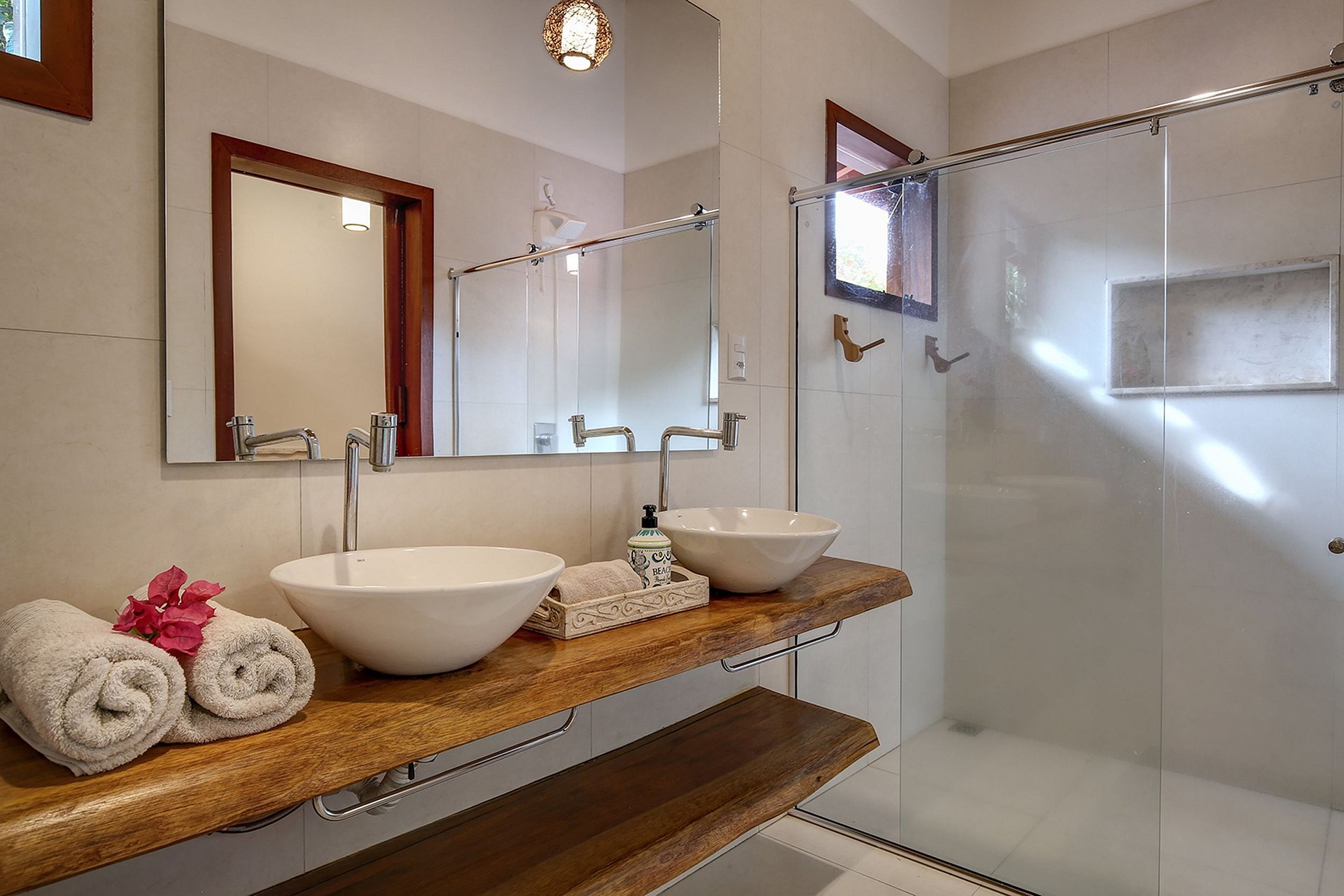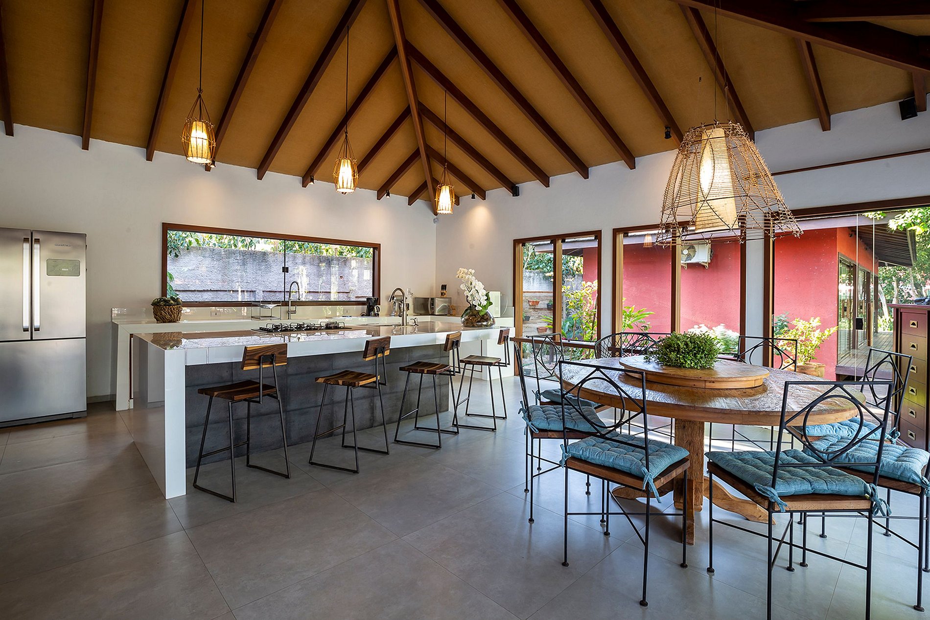 A casa tem chuveiro em cascata no meio do jardim de floresta particular. Tem reservatório de 8.000 litros de água. Bluetooth 5.1 som embutido na área social.