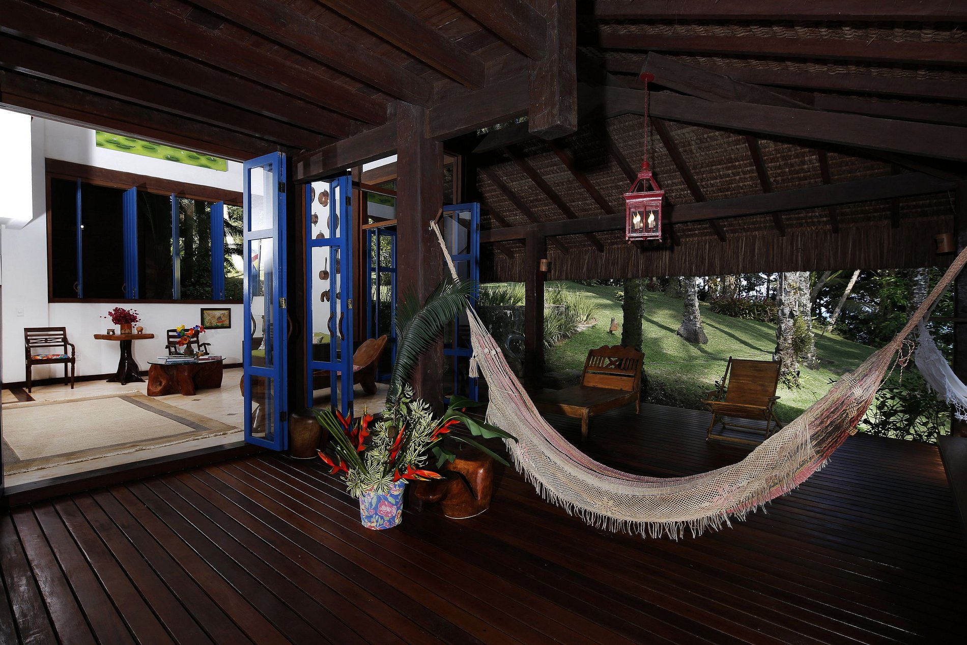 Além das várias redes, há uma grande sala luminosa e confortável, aberta no terraço, para se relaxar após um dia de aventuras na praia.
