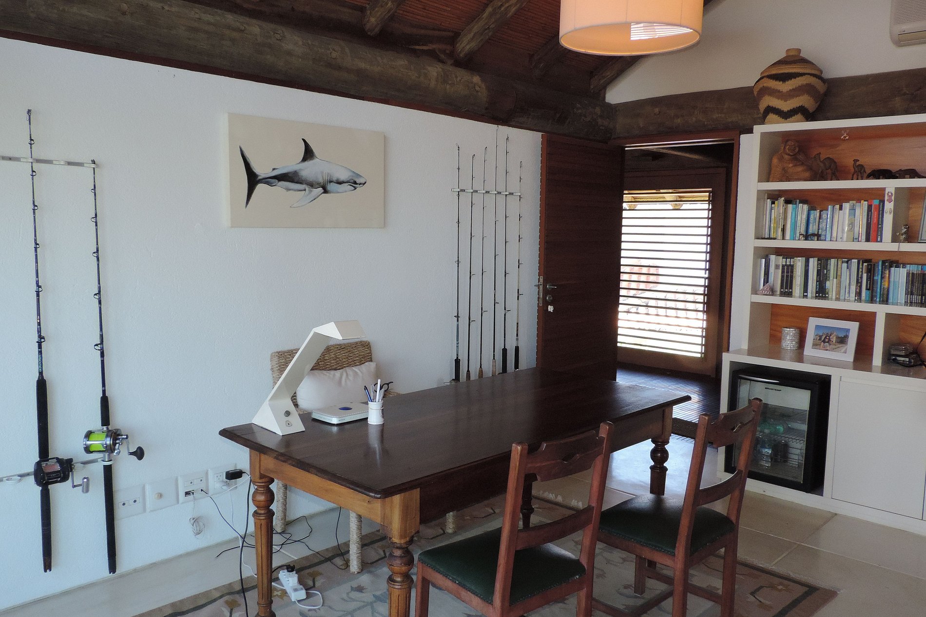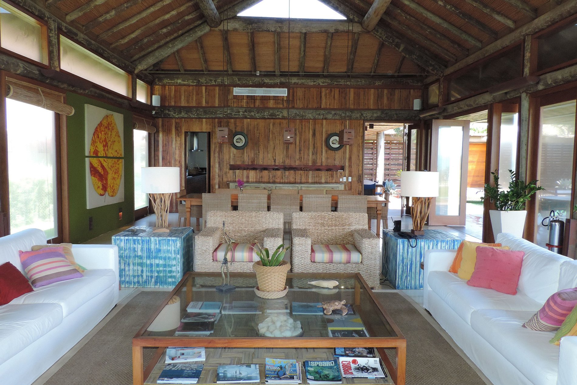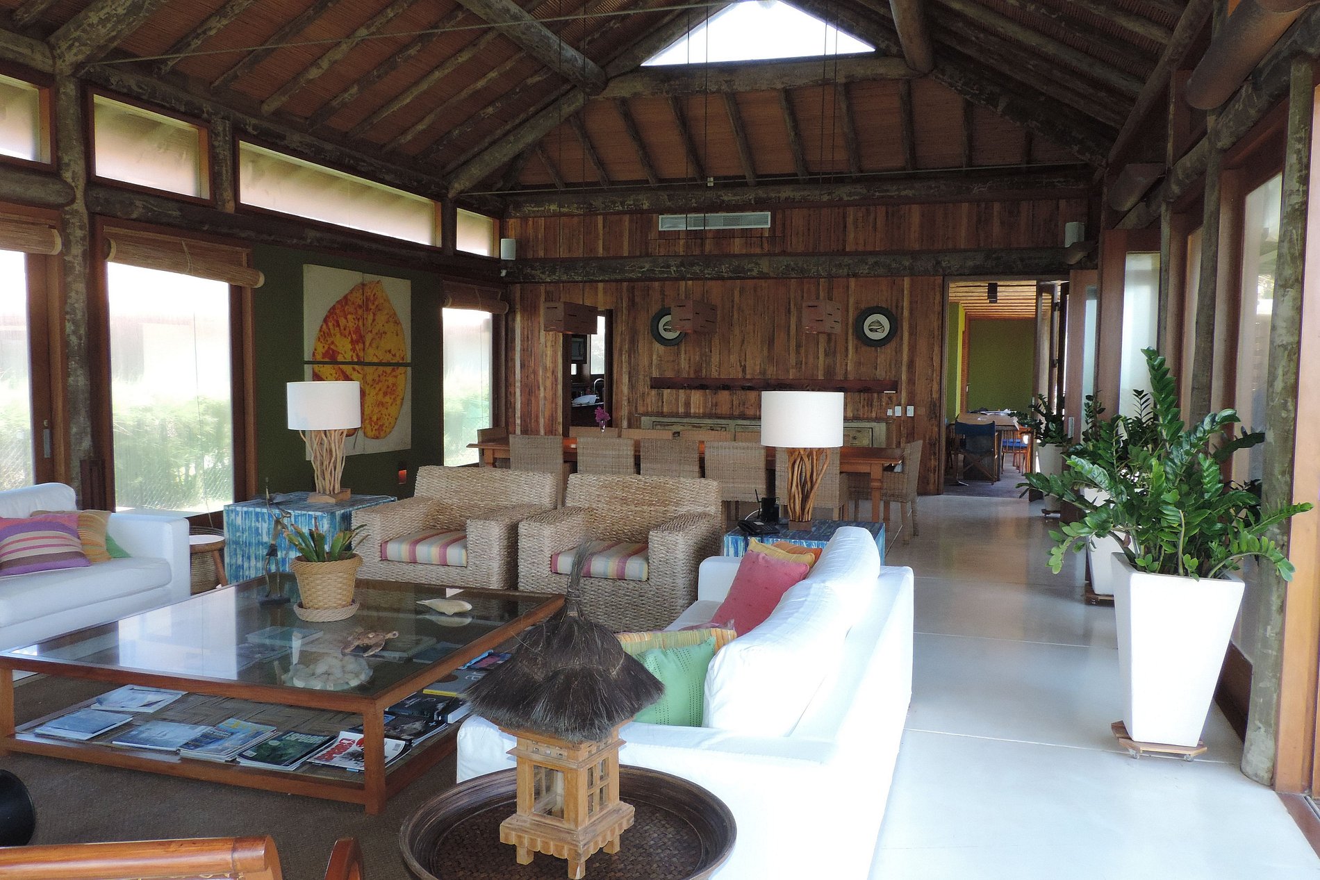 O contraste entre o piso branco e a madeira escura usada na construção fazem você sentir, ao entrar, que está num paraíso tropical. O teto arqueado nas principais áreas comuns oferece o amplo espaço que você espera encontrar em uma mansão de luxo. A mobília e os acabamentos que decoram a residência foram criados sob medida para refletir o estilo de vida tropical, com seus tons sutis acentuados por detalhes em cores vivas.