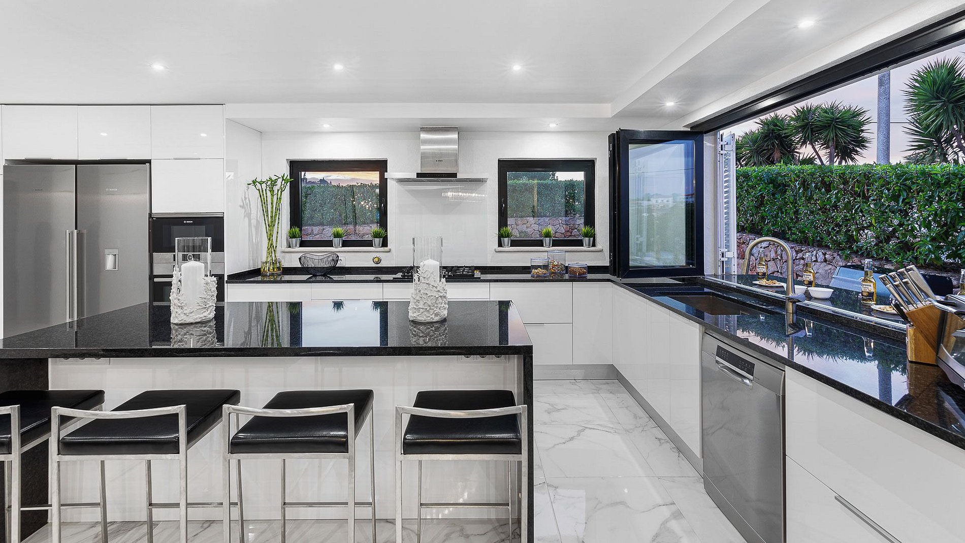 Pisos de mármore e quartos imaculados dão o tom para as portas de vidro dobráveis na frente da casa, que emolduram as magníficas vistas sobre a piscina cintilante, gramados e belas vistas. Um piso plano aberto torna um espaço encantador para entretenimento e aproveita ao máximo os arredores.