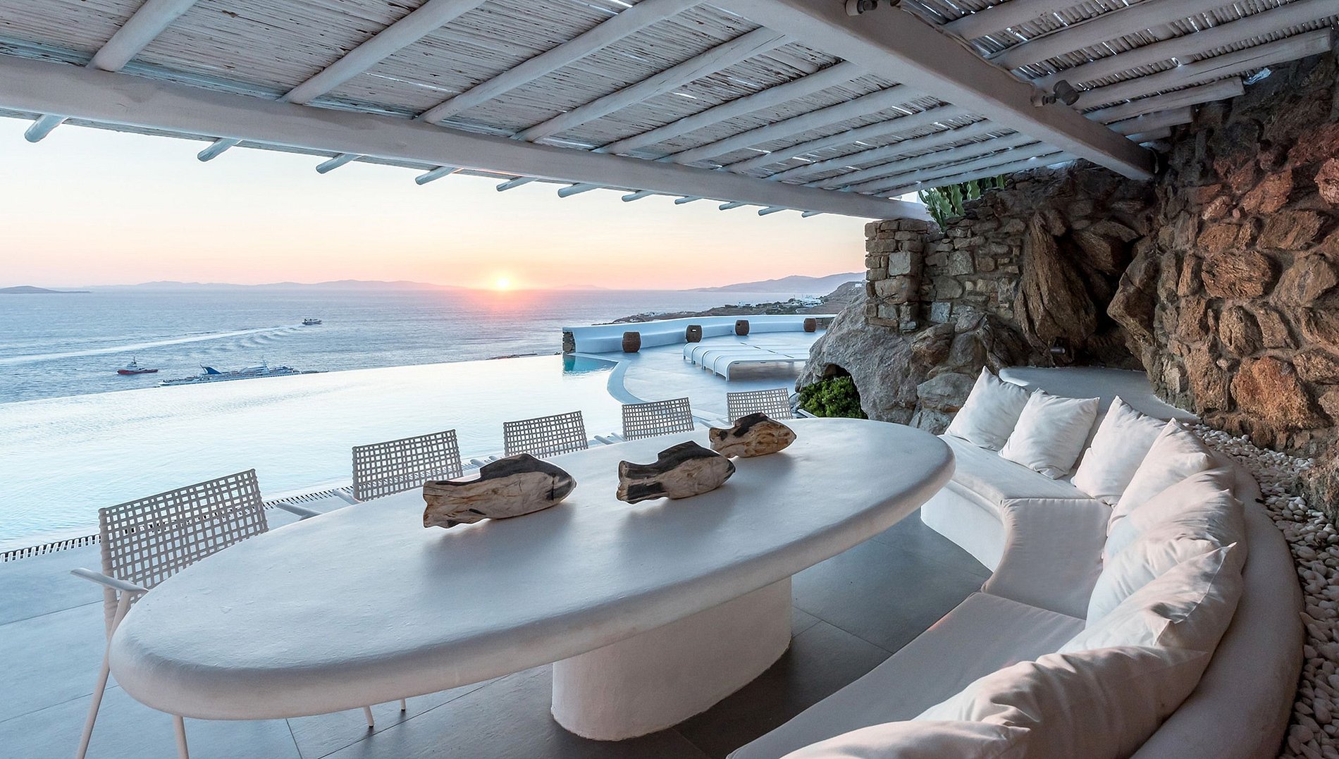 • Construído no topo de uma colina com incrível pôr do sol do mar e vistas de Mykonos