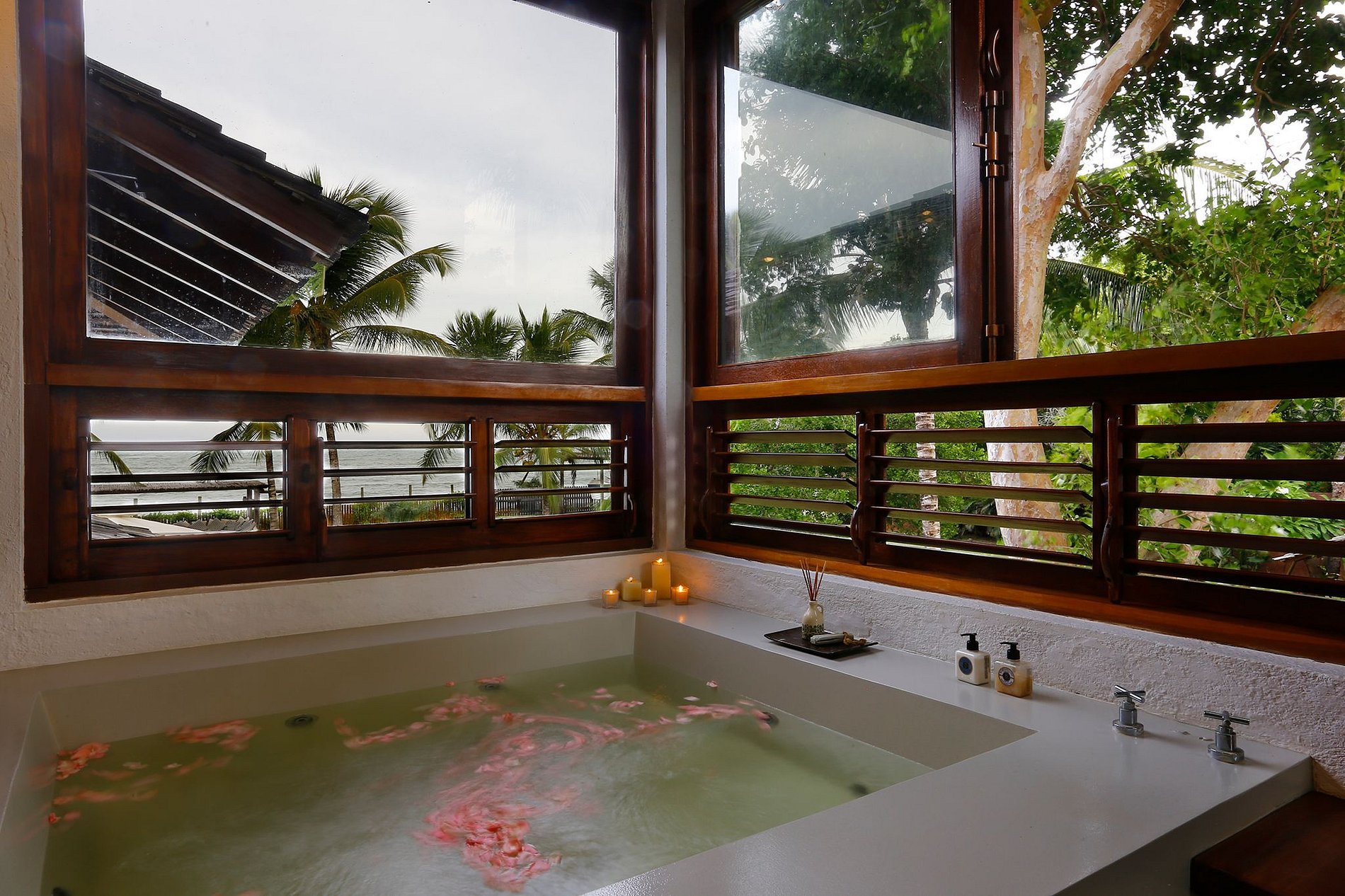 A casa principal possui 3 suítes, e a casa secundária, 2 suítes, sendo um total de 05 suítes, 2 com banheiras com Jacuzzi e 4 com vista mar!