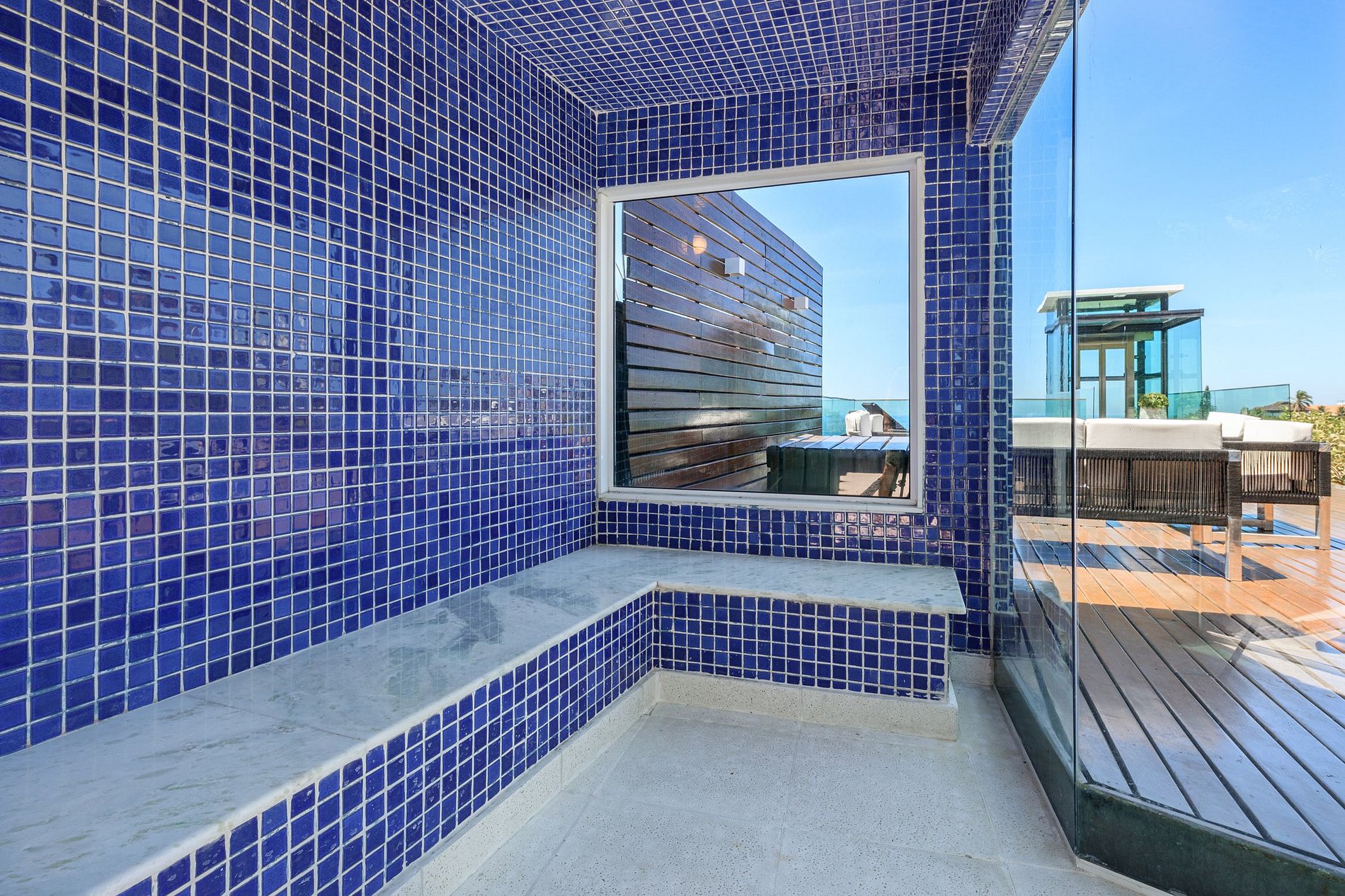 O verde exuberante da beleza natural que envolve Joa e o marítimo azul do oceano estão gerando um glorioso jogo de cores. A melhor maneira de desfrutar desta vista de cair o queixo é nas espreguiçadeiras tropicais projetadas do imenso e magnificamente construído terraço com efeitos infinitivos. Se você se sentir refrescado do calor carioca, não há lugar melhor do que a elegante piscina embutida no terraço.