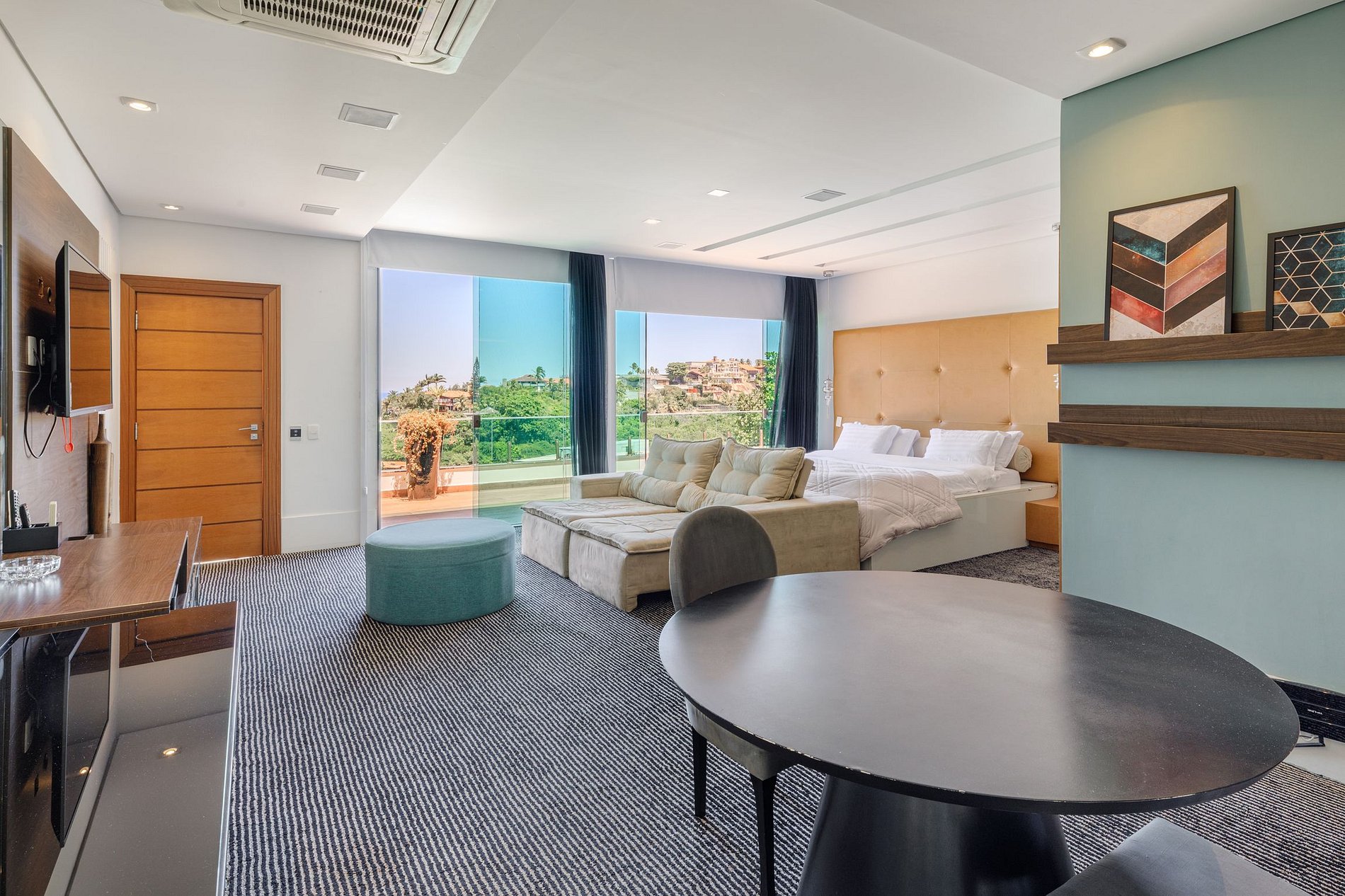 O verde exuberante da beleza natural que envolve Joa e o marítimo azul do oceano estão gerando um glorioso jogo de cores. A melhor maneira de desfrutar desta vista de cair o queixo é nas espreguiçadeiras tropicais projetadas do imenso e magnificamente construído terraço com efeitos infinitivos. Se você se sentir refrescado do calor carioca, não há lugar melhor do que a elegante piscina embutida no terraço.