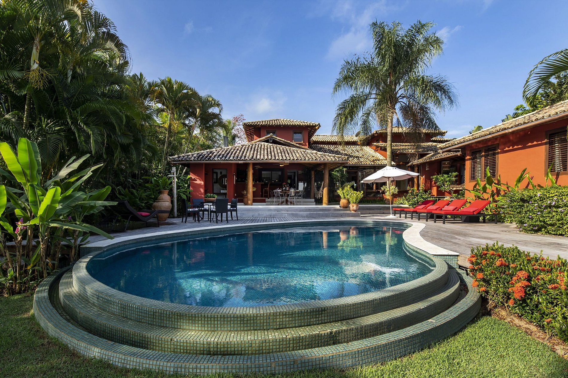 A poucos minutos de uma das praias mais linda de Trancoso, você ficará a menos de 10 minutos de carro do famoso Quadrado e seu imenso valor histórico e cultural, onde se encontra os melhores restaurantes do sul da Bahia. A casa de 550m2 com 1.900 de terreno, tem cada centímetro projetado e arranjado para não deixar desejos por realizar. Esplêndidos terraços de madeira com vista aberta e em frente da propriedade com confortáveis moveis lounge, uma ampla piscina, redes, sofás, num lindo jardim tropical e um a área gourmet coberta.