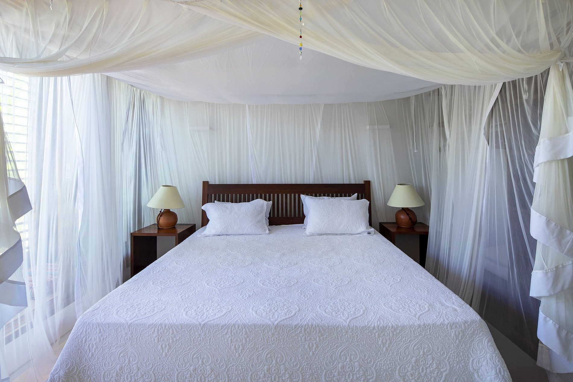 As quatro suítes são muito amplas, luxuosamente equipadas e graças às janelas panorâmicas inundadas de luz natural durante todo o dia. Três das suítes estão chegando com camas king size e uma delas com duas camas de solteiro, gerando uma capacidade para hospedar facilmente 8 hóspedes privados. As casas de banho en-suite estão tendo as melhores novidades. Sem dúvida, você criará algumas memórias de férias ao vivo com a sua amada neste lugar mágico.
