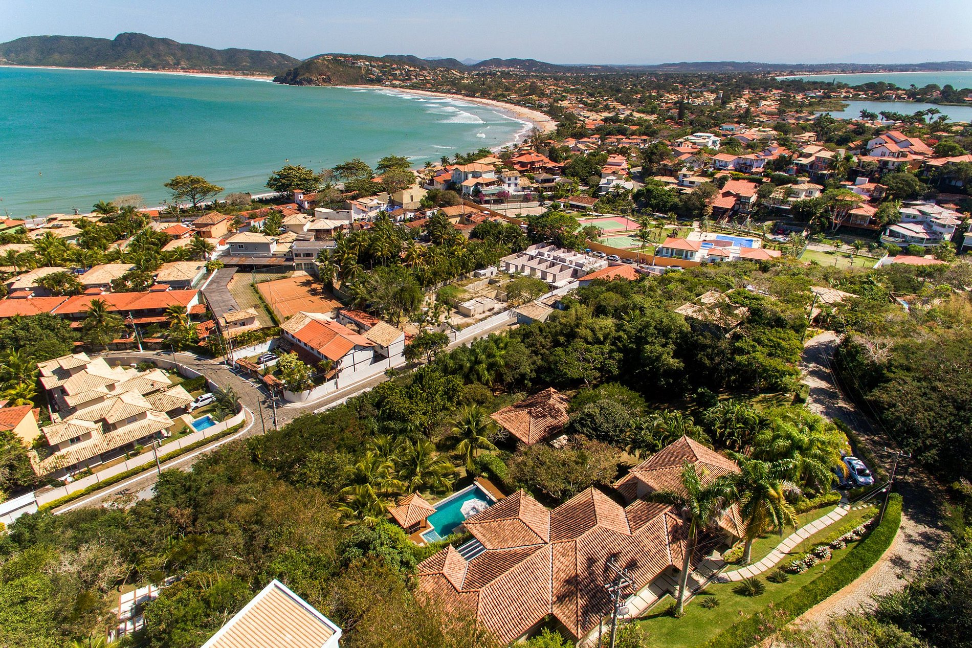 Localizada na parte alta de Geribá, em Búzios, esta villa com 5 suítes conta com uma vista fabulosa das matas tropicais, da cidade e do mar a partir de suas janelas amplas.