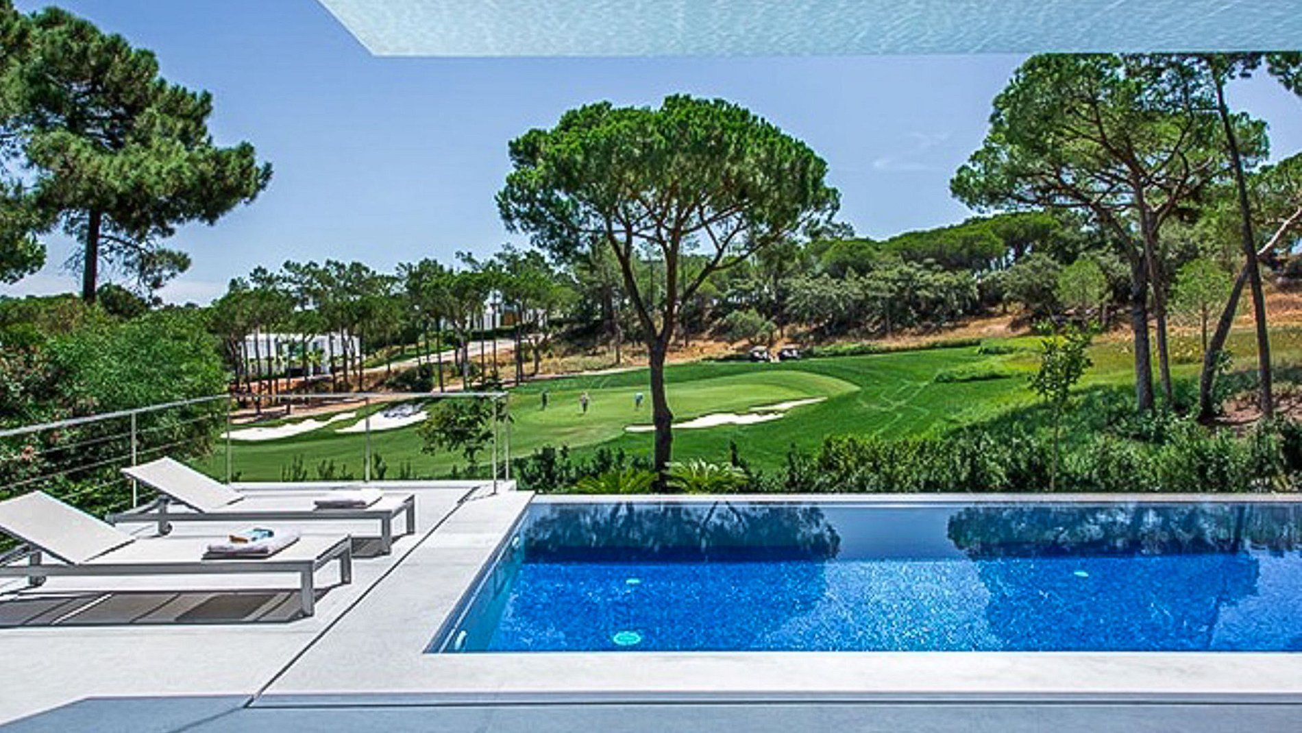 Esta villa minimalista, ultramoderna e luxuosa está localizada no coração da exclusiva zona de Golf leste da Quinta do Lago.