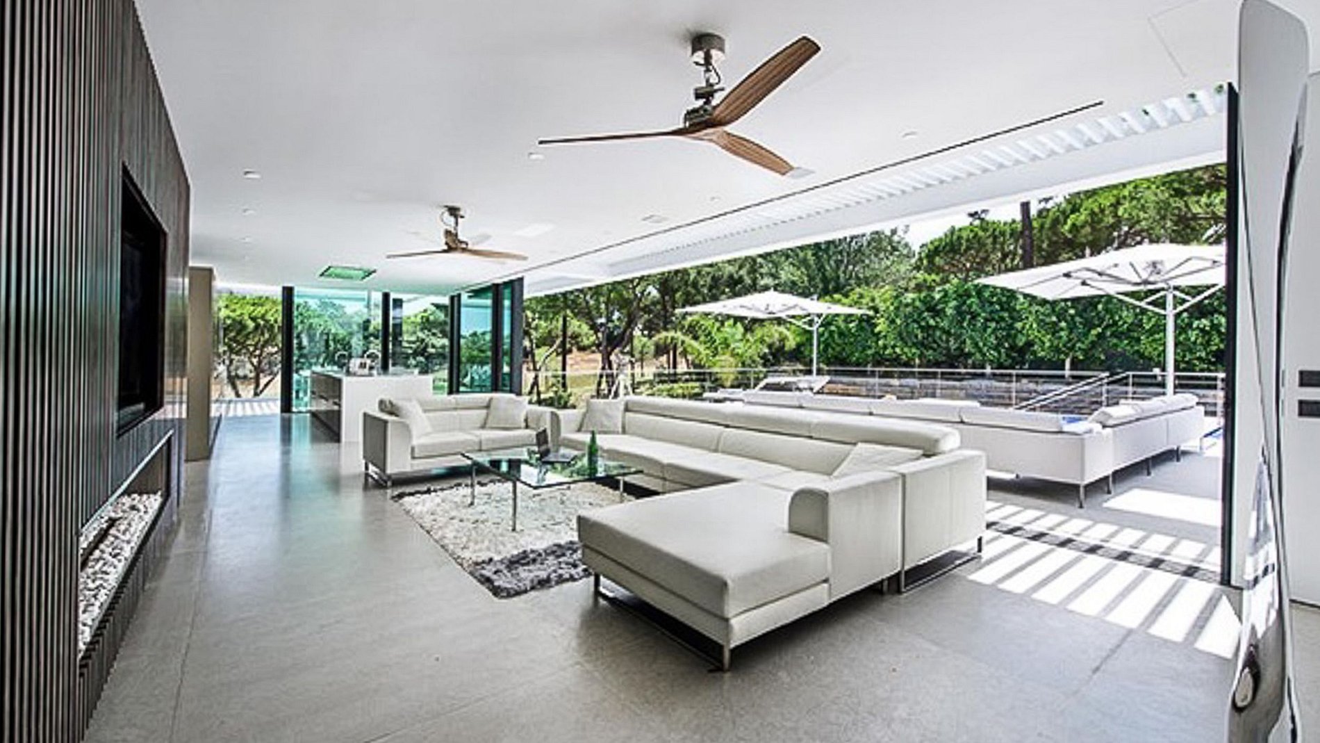 Paredes brancas e pisos claros combinados com as linhas limpas do mobiliário de alta qualidade dão a esta villa uma sensação quase futurista.