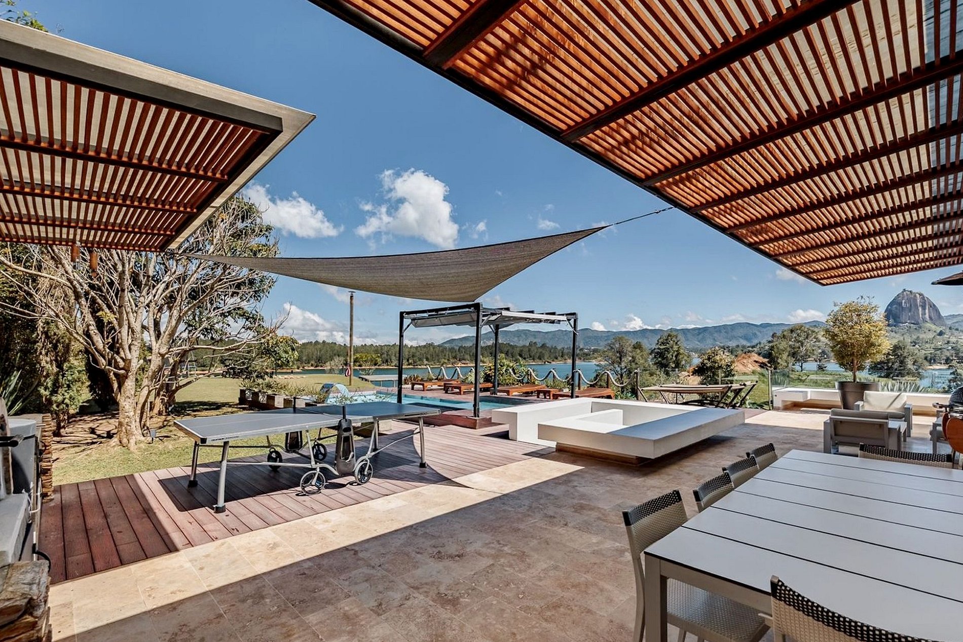 Bem-vindo à nossa deslumbrante casa localizada no meio do deslumbrante Embalse Peñol-Guatapé. Ideal para famílias e grupos que procuram umas férias memoráveis, esta impressionante propriedade de 700 m² combina conforto, elegância e diversão, acomodando até 12 hóspedes.