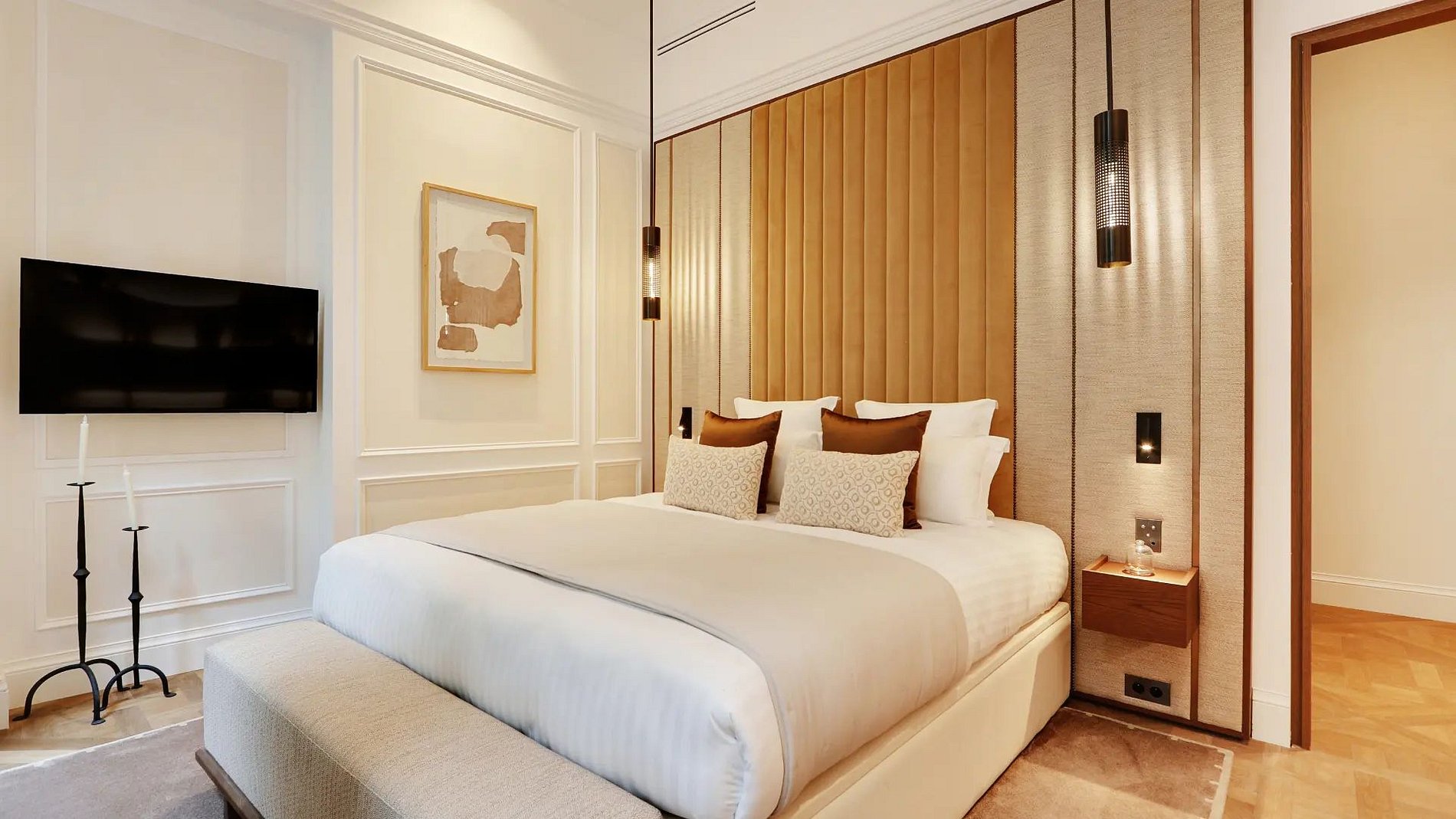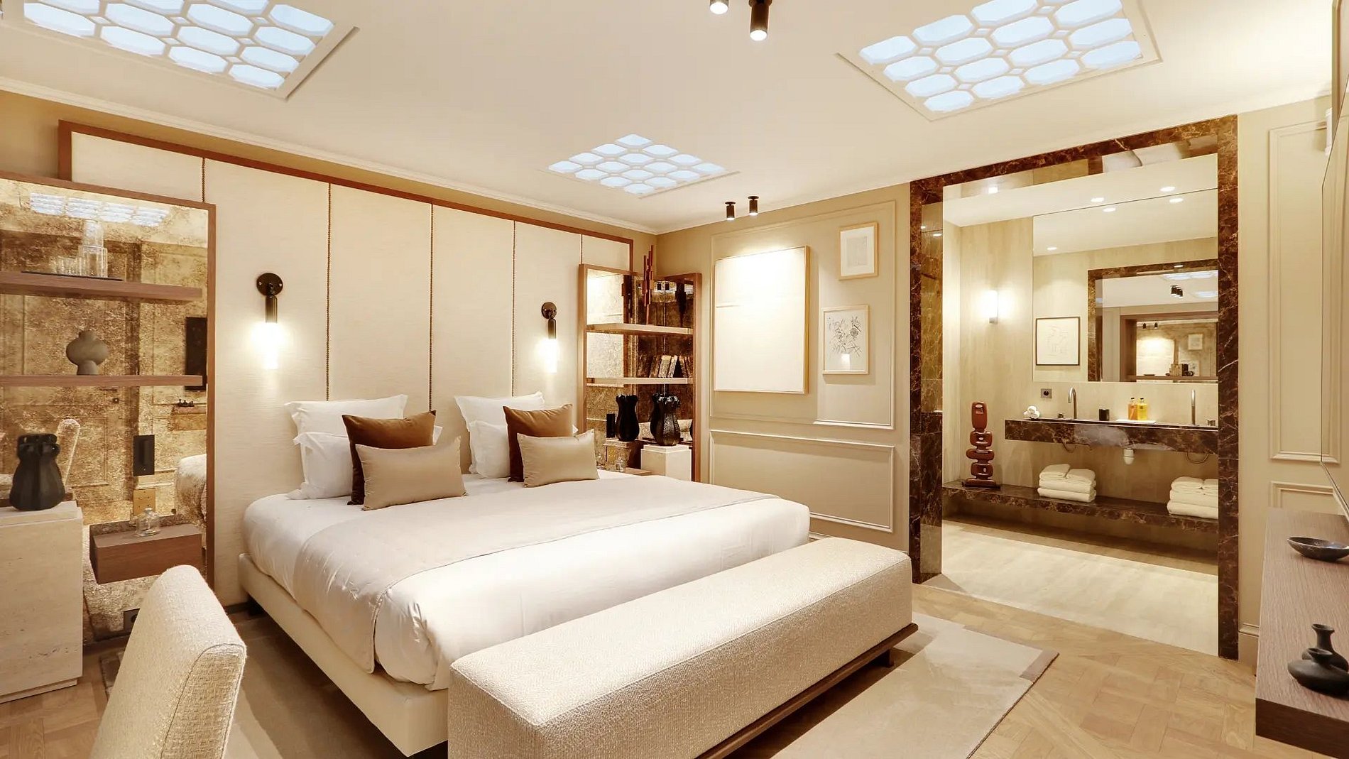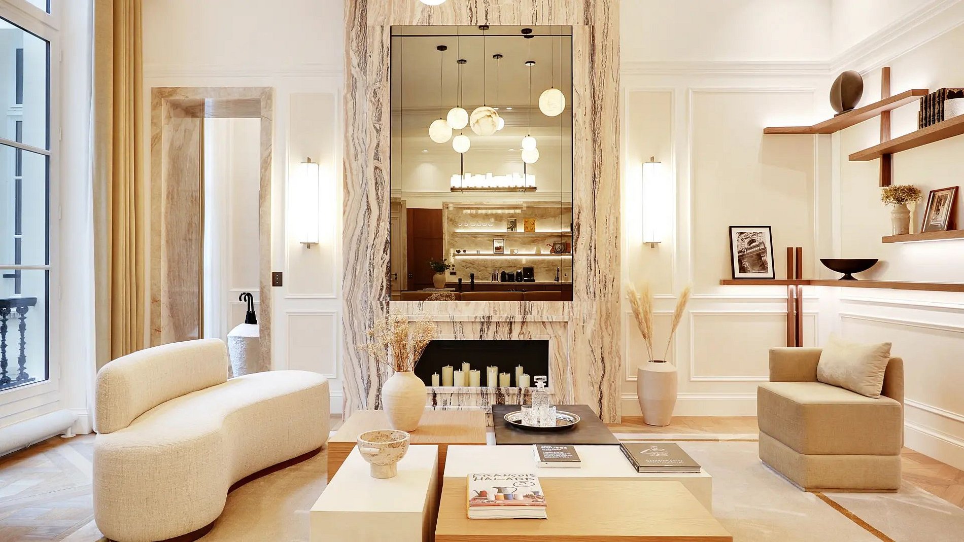Vale destacar que, do chão ao teto, este apartamento é adornado com materiais de qualidade, nobres e atemporais, incluindo o parquê de Versalhes, mármore ou as várias molduras nas paredes; típico dos apartamentos haussmannianos.