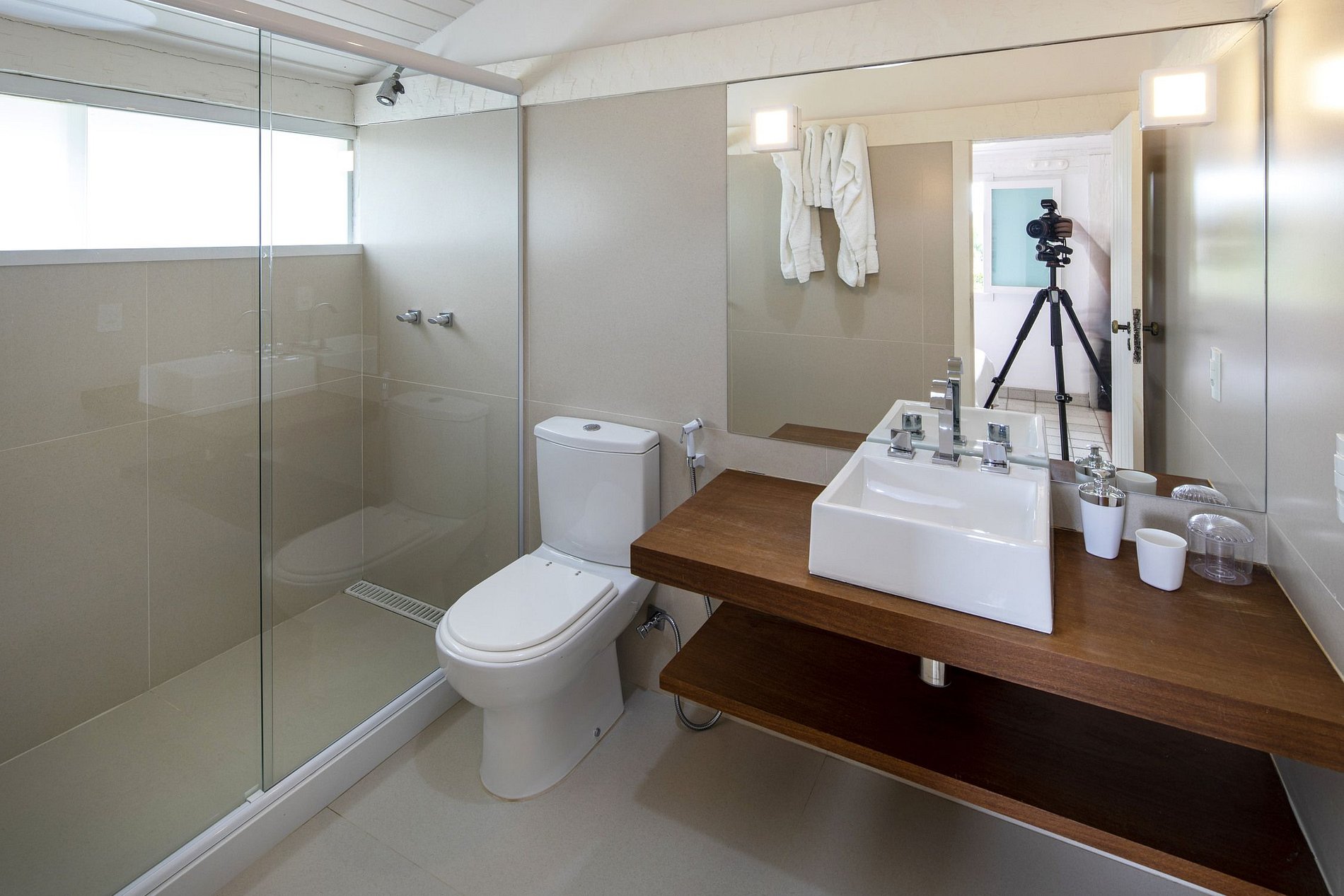 As 5 suítes da propriedade estão todas com banheiro nobre. Você vai encontrar mais um banheiro independente e uma sauna na mansão de 400 metros quadrados. Duas das suítes têm acesso a varandas privativas com vistas incríveis.