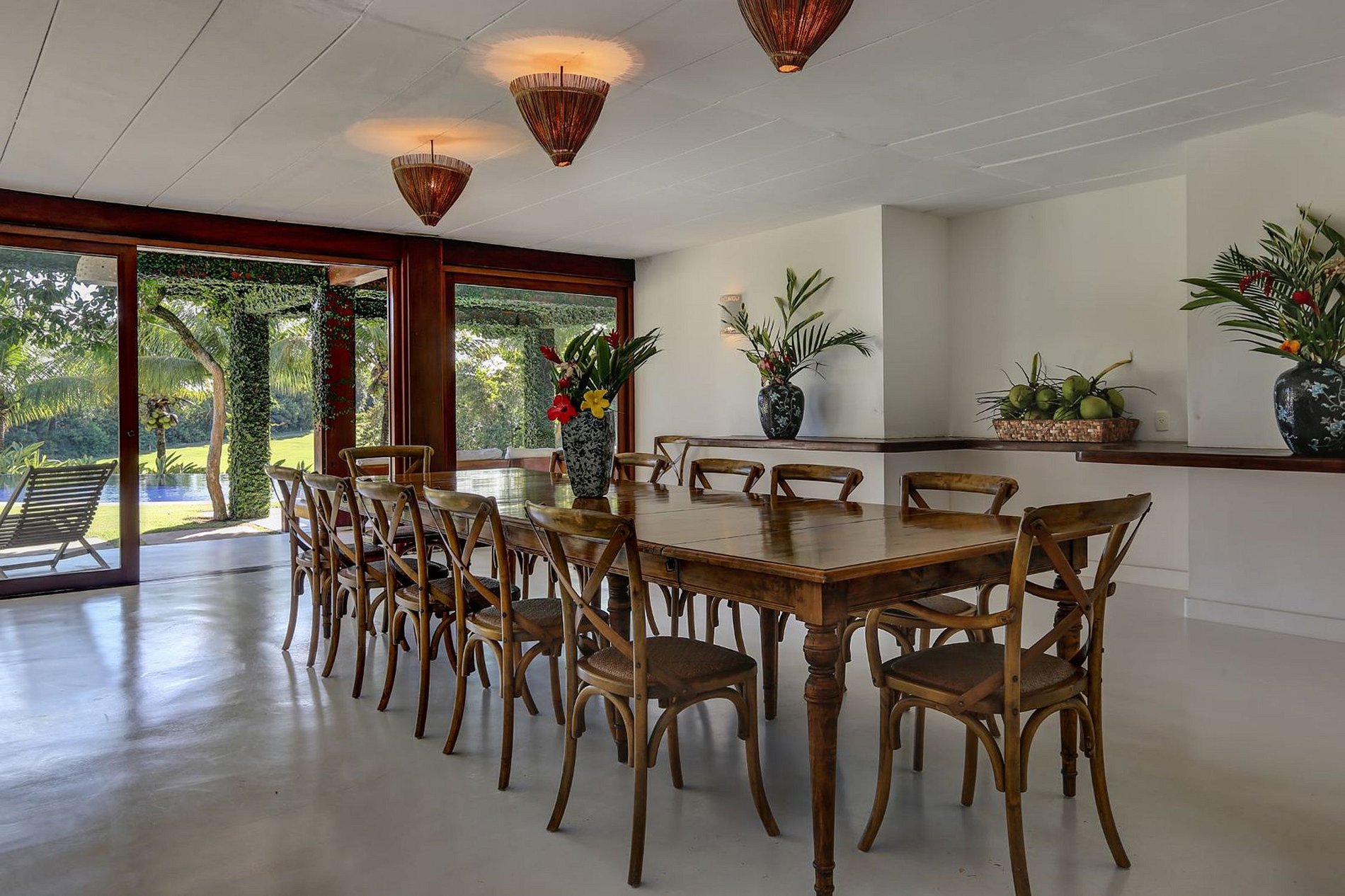 Vocês vão se relaxar e curtir nas amplas sala de estar ou sala de jantar com sua grande mesa, ambos abertas num lindo jardim tropical.